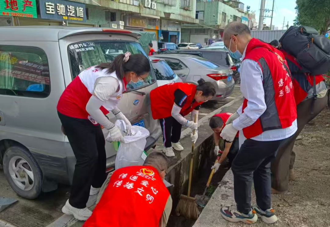 在長(zhǎng)沙街道南島社區(qū),陳冀與黨員先鋒隊(duì)、社區(qū)干部及群團(tuán)志愿者通力合作,清理道路兩旁、樹蔭下以及排水溝中的雨后積水、落葉斷枝、垃圾雜物和衛(wèi)生死角。大家齊心協(xié)力,清除蚊蟲孳生環(huán)境,加速恢復(fù)社區(qū)整潔、有序、健康的生活面貌。
