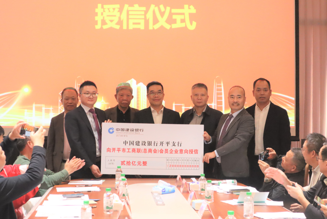 會(huì)上,中國建設(shè)銀行開平支行向市工商聯(lián)(總商會(huì))會(huì)員企業(yè)意向授予20億元信貸額度,并進(jìn)行了金融政策宣講。