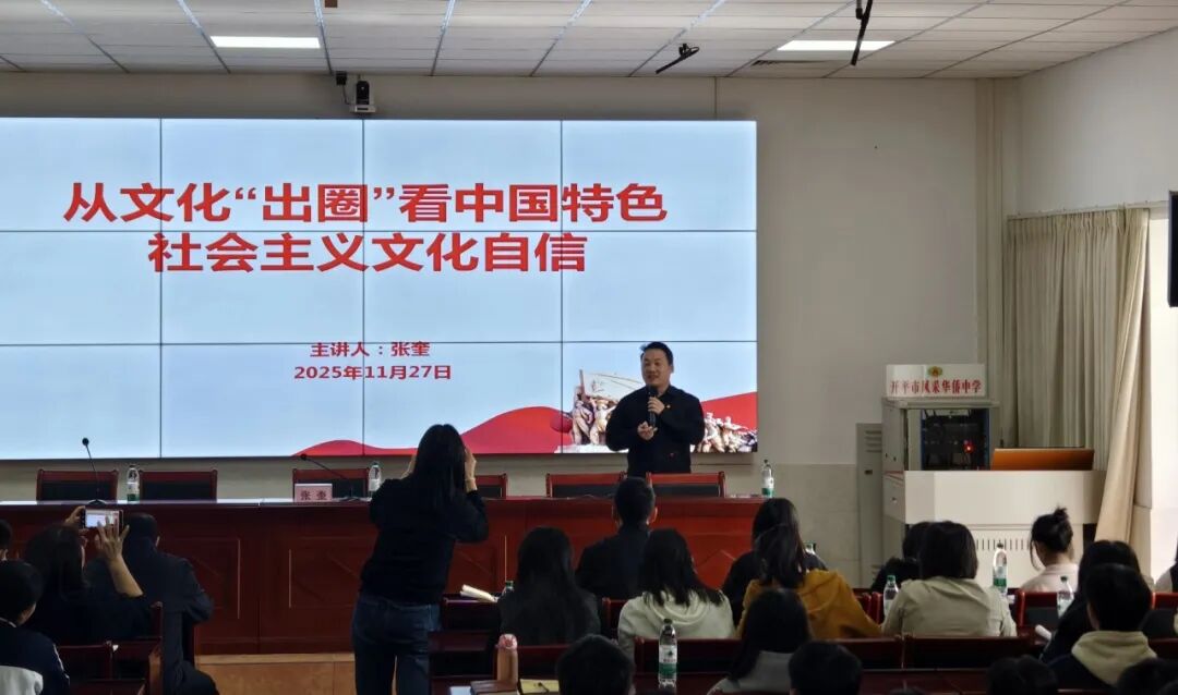 華南理工大學(xué)馬克思主義學(xué)院團委書記張奎為師生作主題宣講,緊扣文化“出圈”這一時代熱點,深入解讀了其中蘊含的文化自信密碼。以鮮活例證和深刻分析,引導(dǎo)師生深刻感悟中國特色社會主義文化的強大生命力,進一步堅定了大家的文化信念。
