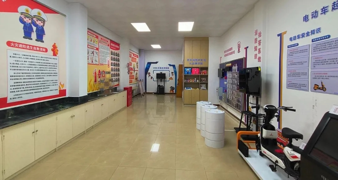 開平市消防救援大隊消防教育科普體驗(yàn)室,是江門市基層消防大隊中首家建立的消防教育科普體驗(yàn)室,面積約60平方米。該沉浸式智能科普平臺,從“防”“滅”“救”三個維度,全面展示了消防形象、知識科普、技能體驗(yàn)、設(shè)備實(shí)操、應(yīng)急救護(hù)五大展區(qū),其中配置有電動車起火模擬實(shí)驗(yàn)臺、消防知識搶答與學(xué)習(xí)、樓宇火災(zāi)報警聯(lián)動系統(tǒng)、VR火災(zāi)現(xiàn)場模擬體驗(yàn)、應(yīng)急繩結(jié)學(xué)習(xí)、消防器材展示等功能區(qū)。通過“場景+體驗(yàn)+互動”的多元化宣傳模式,讓群眾零距離體驗(yàn)和學(xué)習(xí)消防知識。