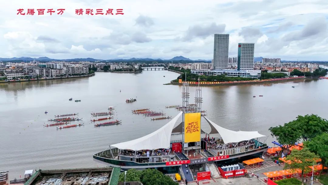 6月10日上午,“甲辰龍騰 盛世中華”2024全國(guó)龍舟大聯(lián)動(dòng) 龍騰百千萬(wàn) 精彩三點(diǎn)三 “嘉士利杯”江門(開平)國(guó)際龍舟邀請(qǐng)賽在開平潭江河段激情開賽。來(lái)自本地、粵港澳大灣區(qū)及國(guó)際的36支龍舟勁旅乘風(fēng)破浪、爭(zhēng)霸潭江,吸引數(shù)萬(wàn)名觀眾齊聚現(xiàn)場(chǎng),為參賽隊(duì)伍搖旗吶喊、加油助威。江門市委副書記、市長(zhǎng)吳曉暉,廣東省社會(huì)體育和訓(xùn)練競(jìng)賽中心主任蔡建祥,江門市副市長(zhǎng)林健生,江門市政府秘書長(zhǎng)龐正華,開平市委書記余中華,開平市委副書記、市長(zhǎng)陳小曼,江門市政府副秘書長(zhǎng)梁靈花等出席活動(dòng)。 賽龍舟作為一項(xiàng)傳承千年的民俗活動(dòng),不僅承載著一代又一代中華兒女的端午記憶,也吸引了越來(lái)越多外籍人士的關(guān)注和參與。本次比賽除了來(lái)自開平本地的24支龍舟隊(duì)外,還吸引了來(lái)自中國(guó)香港、中國(guó)澳門、俄羅斯、英國(guó)、馬來(lái)西亞等國(guó)家和地區(qū)的12支標(biāo)準(zhǔn)龍舟隊(duì)參加,盡顯中外好手云集的“國(guó)際范”。中央廣播電視總臺(tái)“大灣區(qū)之聲”、廣東發(fā)布等超10家國(guó)家、省、市新媒體平臺(tái)對(duì)活動(dòng)進(jìn)行了現(xiàn)場(chǎng)直播,線上觀看人數(shù)超2300萬(wàn)人次。