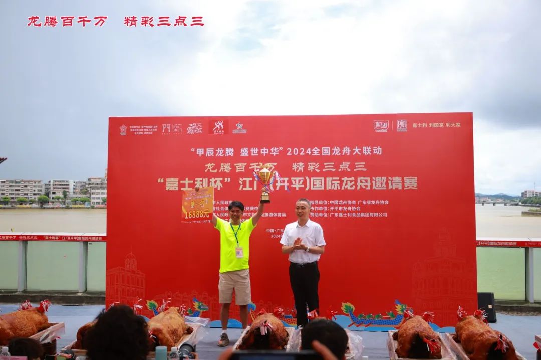 “龍騰百千萬(wàn),精彩三點(diǎn)三。我宣布,‘甲辰龍騰 盛世中華’2024全國(guó)龍舟大聯(lián)動(dòng)‘嘉士利杯’江門(開平)國(guó)際龍舟邀請(qǐng)賽正式開始!” 上午10時(shí),吳曉暉宣布比賽正式開始。