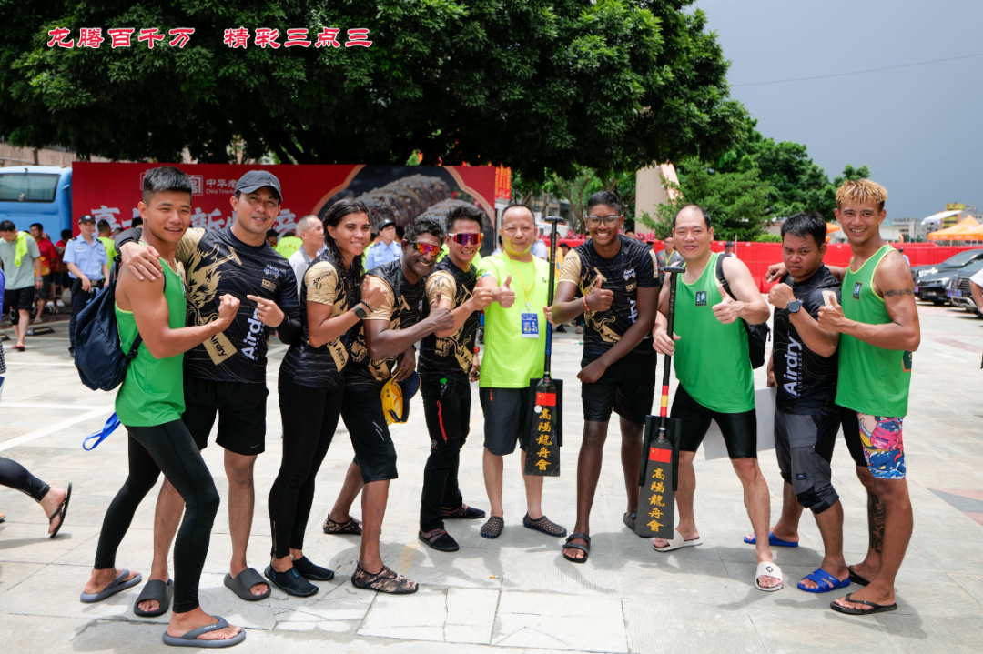 國(guó)外龍舟隊(duì)與本地龍舟隊(duì)組成“合拍天團(tuán)”,現(xiàn)場(chǎng)出道