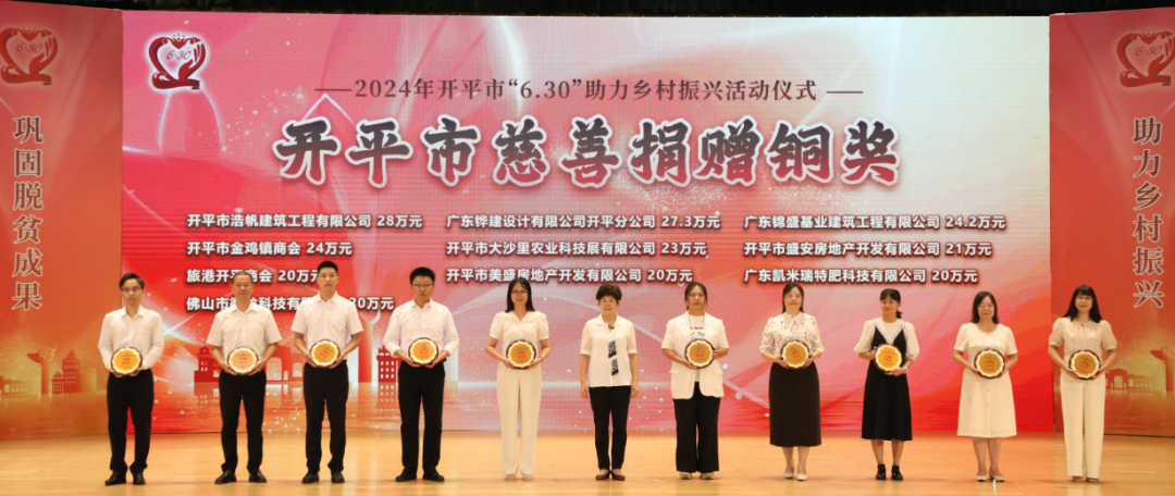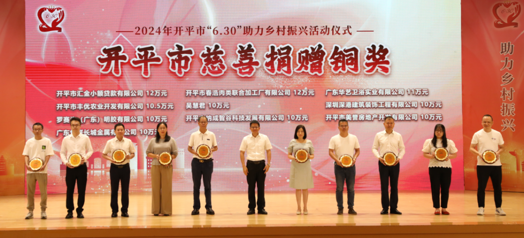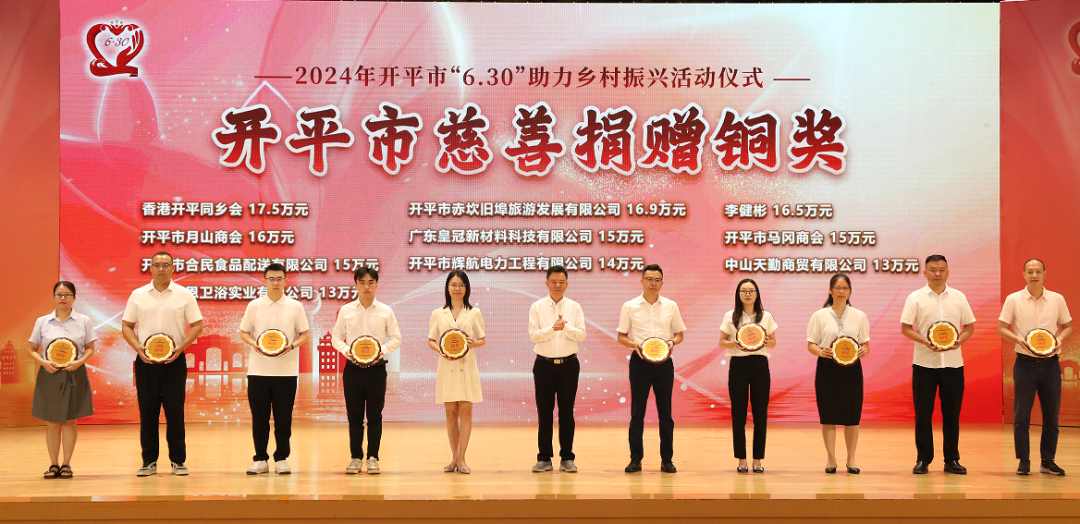 近年來,開平市社會(huì)各界積極參與“6·30”活動(dòng),涌現(xiàn)出一大批具有強(qiáng)烈社會(huì)責(zé)任感、樂于奉獻(xiàn)的愛心企業(yè)、愛心組織和個(gè)人?;顒?dòng)宣讀了《關(guān)于表揚(yáng)開平市2023年度慈善捐贈(zèng)先進(jìn)單位和先進(jìn)個(gè)人的決定》,對在開平市2023年“6·30”助力鄉(xiāng)村振興活動(dòng)中作出突出貢獻(xiàn)的82個(gè)單位和個(gè)人進(jìn)行表揚(yáng),并向獲得開平市慈善捐贈(zèng)特別貢獻(xiàn)獎(jiǎng),開平市愛心慈善組織獎(jiǎng),開平市慈善捐贈(zèng)金、銀、銅獎(jiǎng)的單位及個(gè)人頒發(fā)獎(jiǎng)牌。