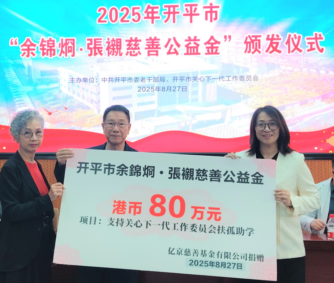 2025年,“余錦烱·張襯慈善公益金”項(xiàng)目在開平市醫(yī)療、教育和扶貧助困等慈善項(xiàng)目中共捐贈(zèng)港幣8380萬元,助力開平高質(zhì)量發(fā)展。