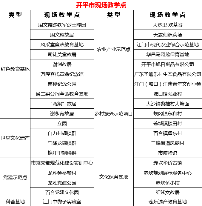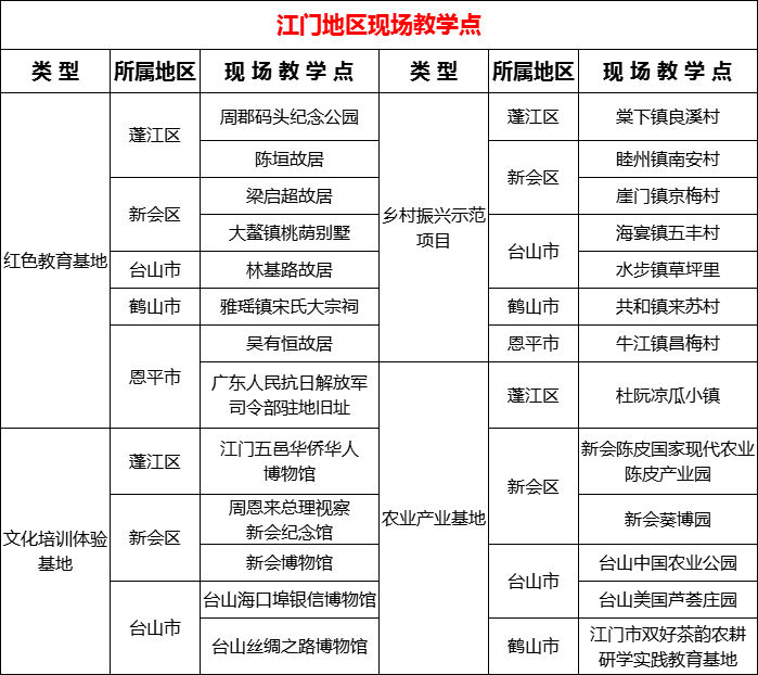 為增強培訓吸引力,培訓中心把現(xiàn)場教學點作為干部教育培訓“第二課堂”,主動挖掘江門地區(qū)64個現(xiàn)場教學點資源,串點成線、以線帶面,構建豐富多元的現(xiàn)場教學培訓體系。