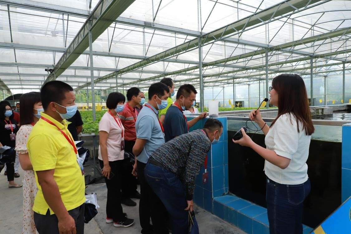 △魚菜共生創(chuàng)業(yè)團隊成員給學員介紹魚菜共生循環(huán)農(nóng)業(yè)植物工廠
