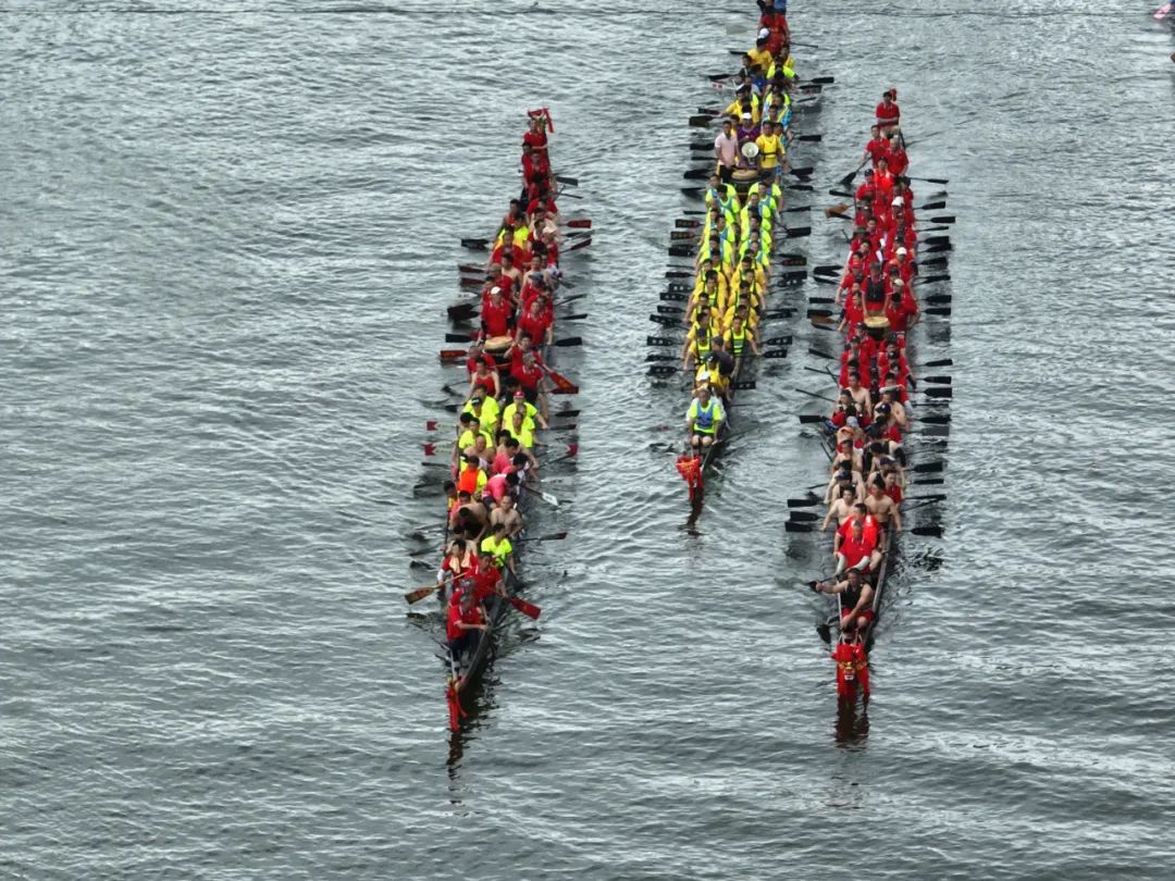 本次爭霸賽共分為標準龍舟比賽和傳統(tǒng)龍舟比賽兩大組別,其中傳統(tǒng)龍舟比賽更是將現(xiàn)場氣氛推向高潮。平日隱匿于淤泥之下的傳統(tǒng)龍舟重煥光彩,船上既有經(jīng)驗豐富的老舵手,也有朝氣蓬勃的年輕健兒,大家齊心協(xié)力,為兩岸觀眾帶來一場速度與激情的視覺盛宴。