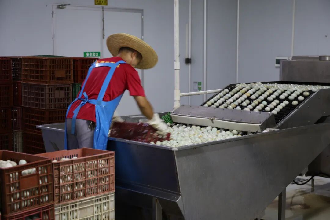 走進(jìn)位于蒼城鎮(zhèn)的廣東澳德蛋品有限公司,智能化的生產(chǎn)場景撲面而來。一枚枚新鮮雞蛋整齊排列在傳送帶上,沿著流水線開啟“變身”之旅。它們將根據(jù)不同終端產(chǎn)品的生產(chǎn)需求,被自動分離加工成蛋黃、蛋清液等高附加值產(chǎn)品,實現(xiàn)雞蛋資源的優(yōu)化配置與高效利用。