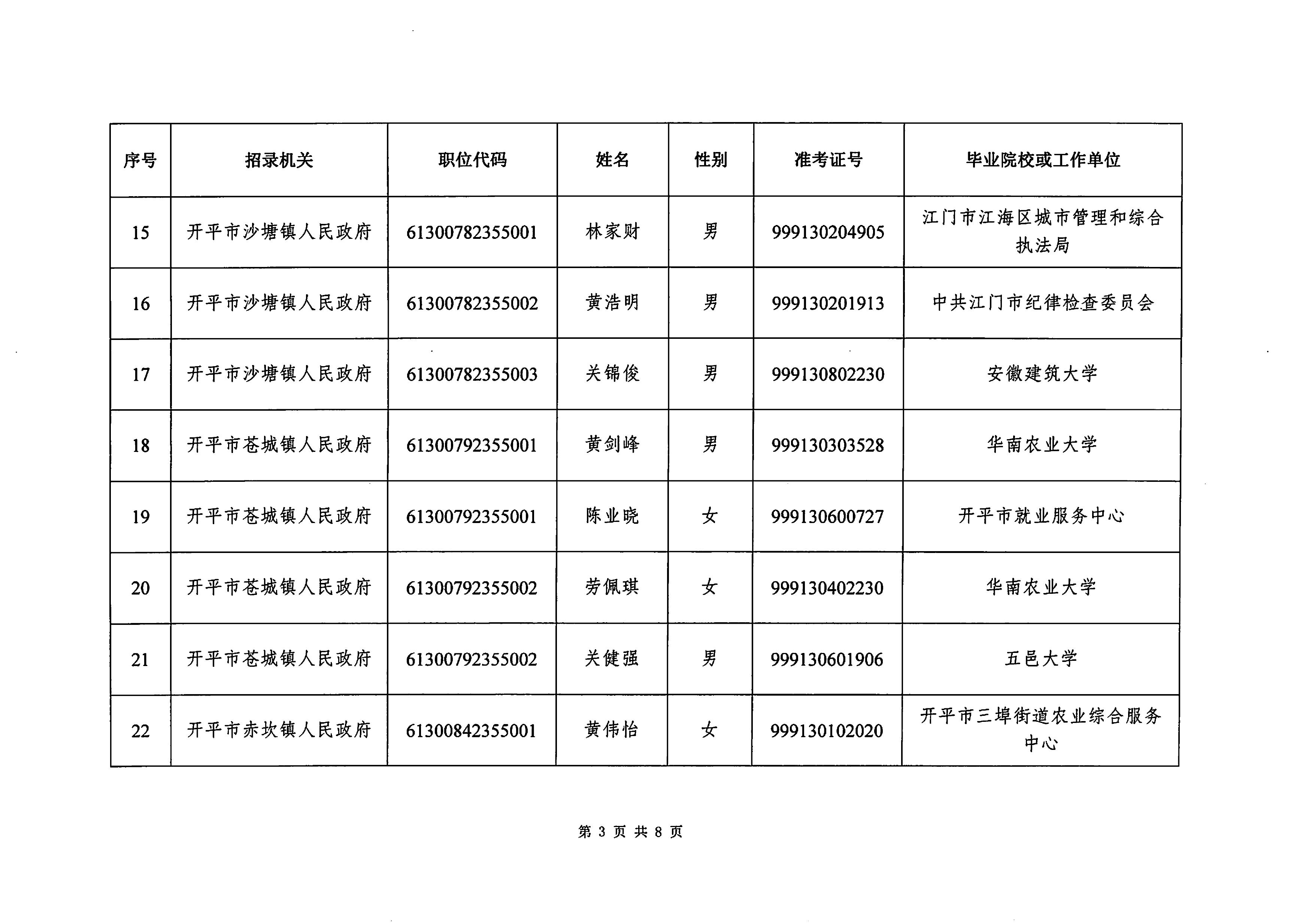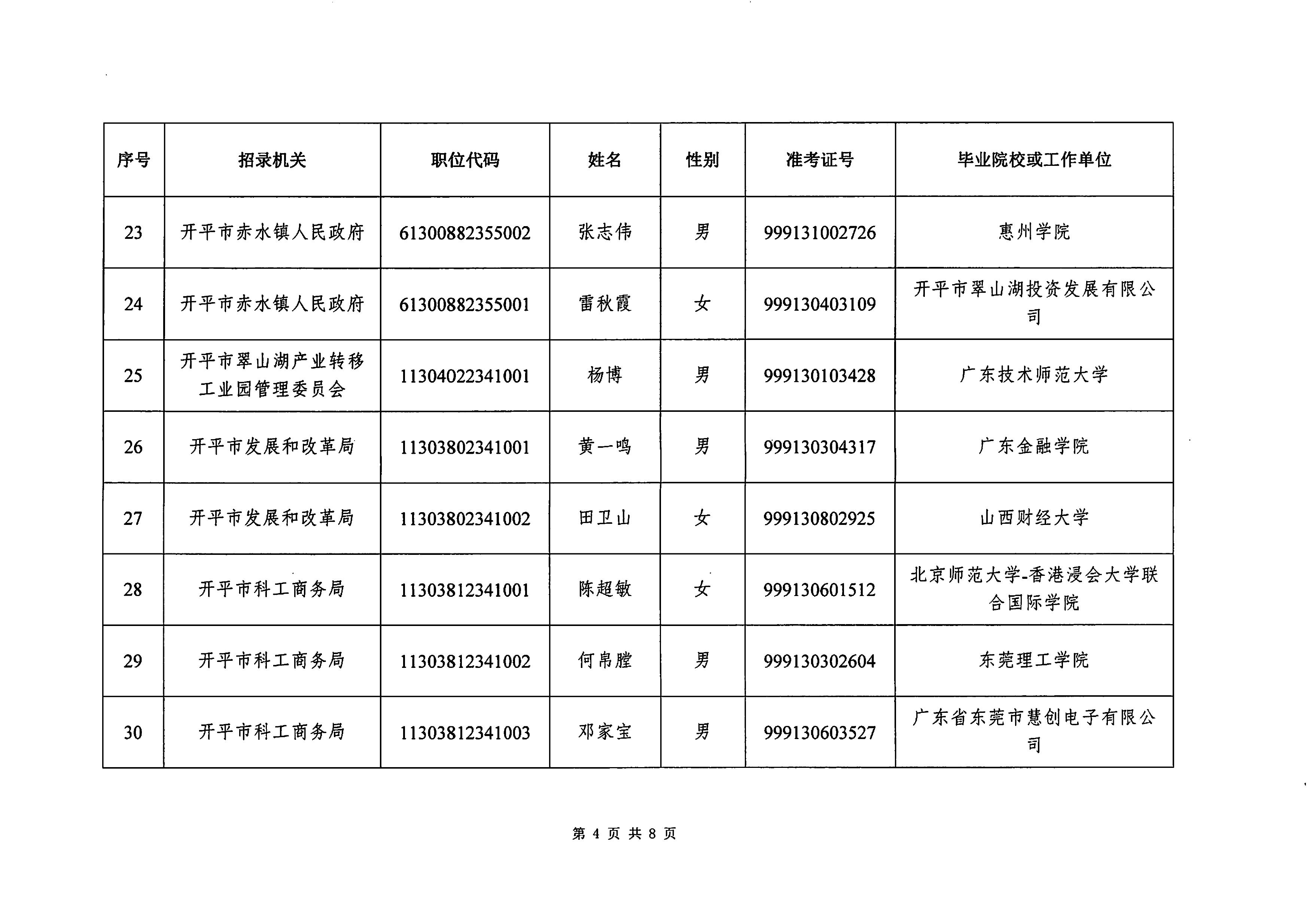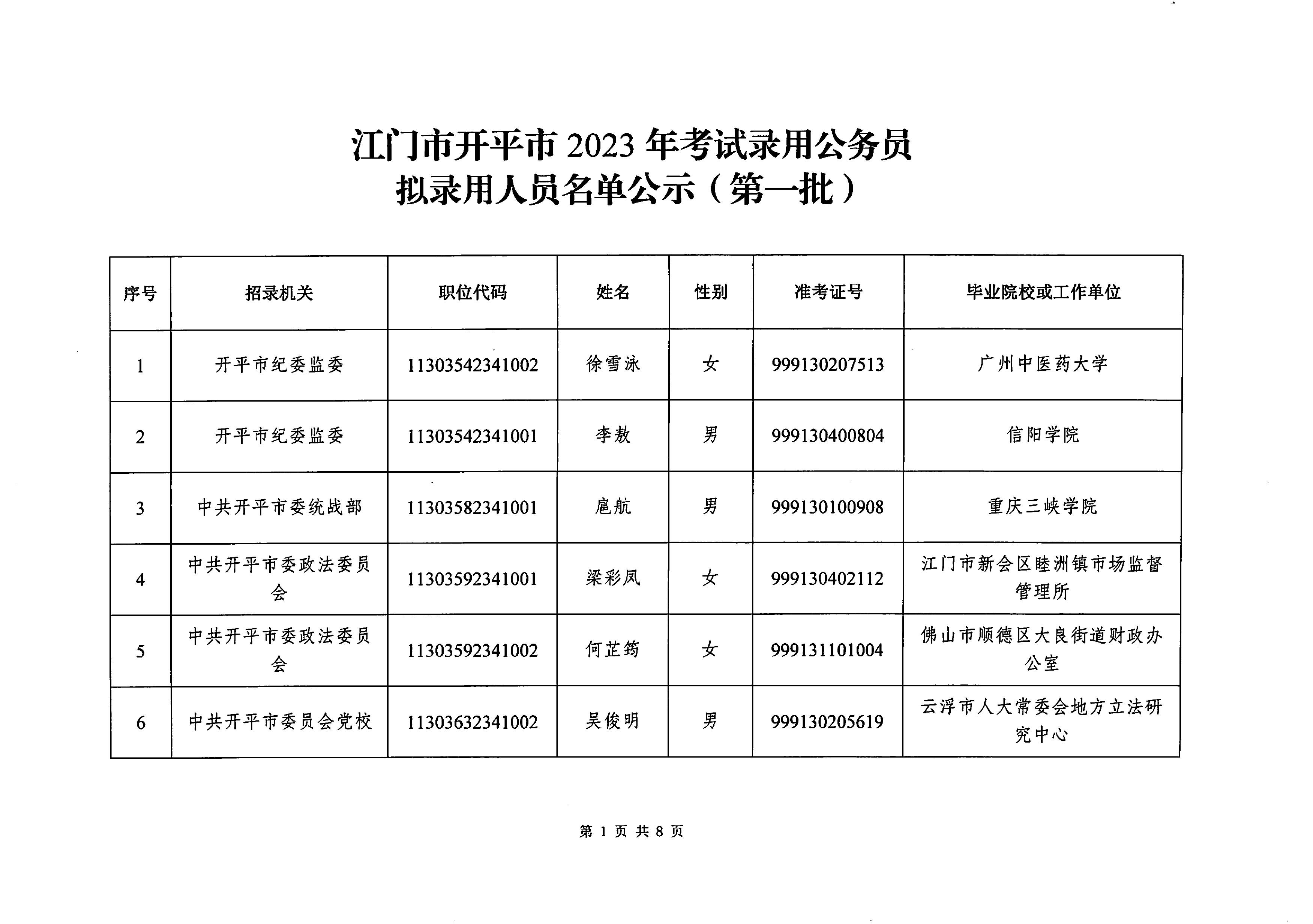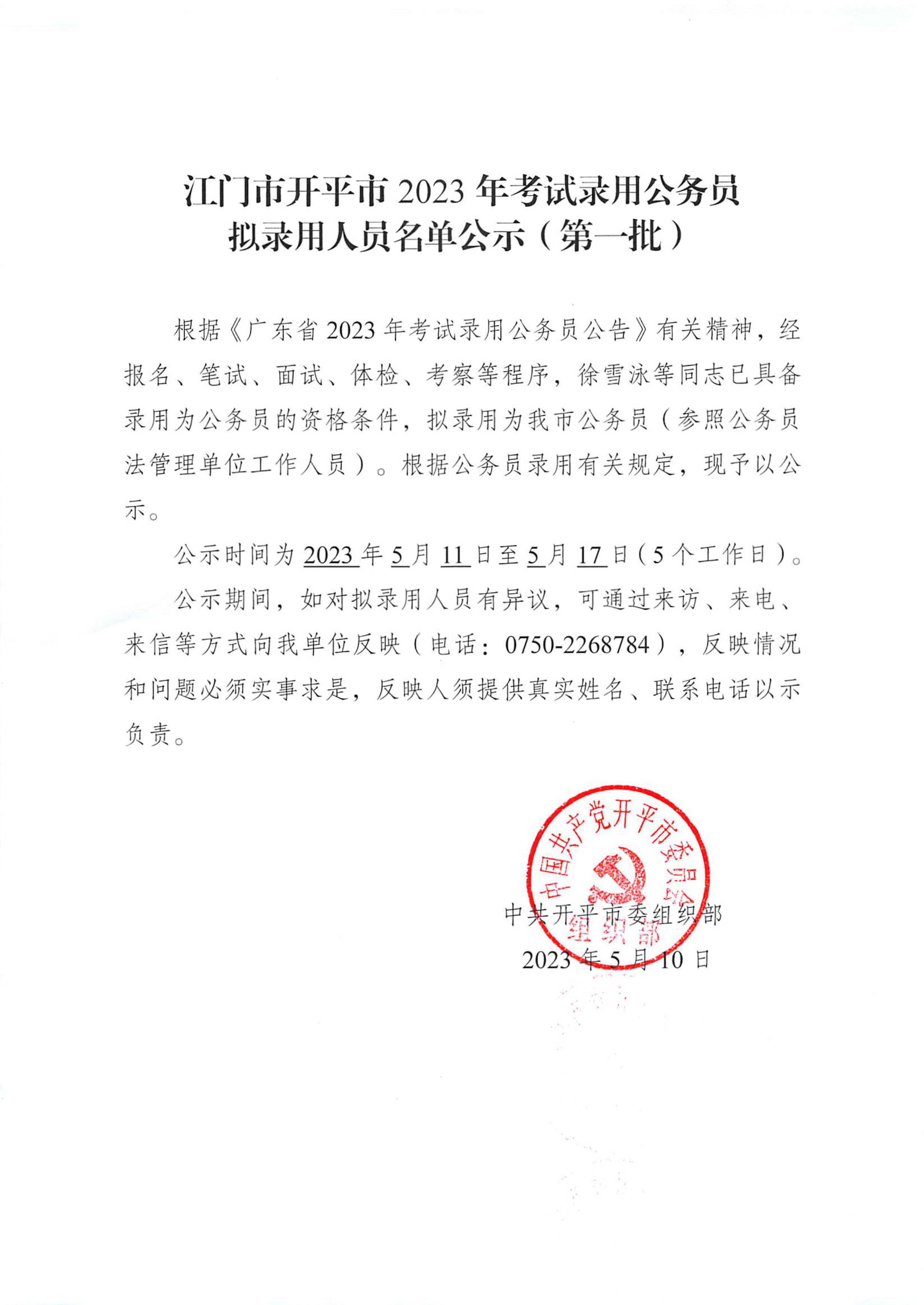 江門市開平市2023年考試錄用公務(wù)員擬錄用人員名單公示(第一批)