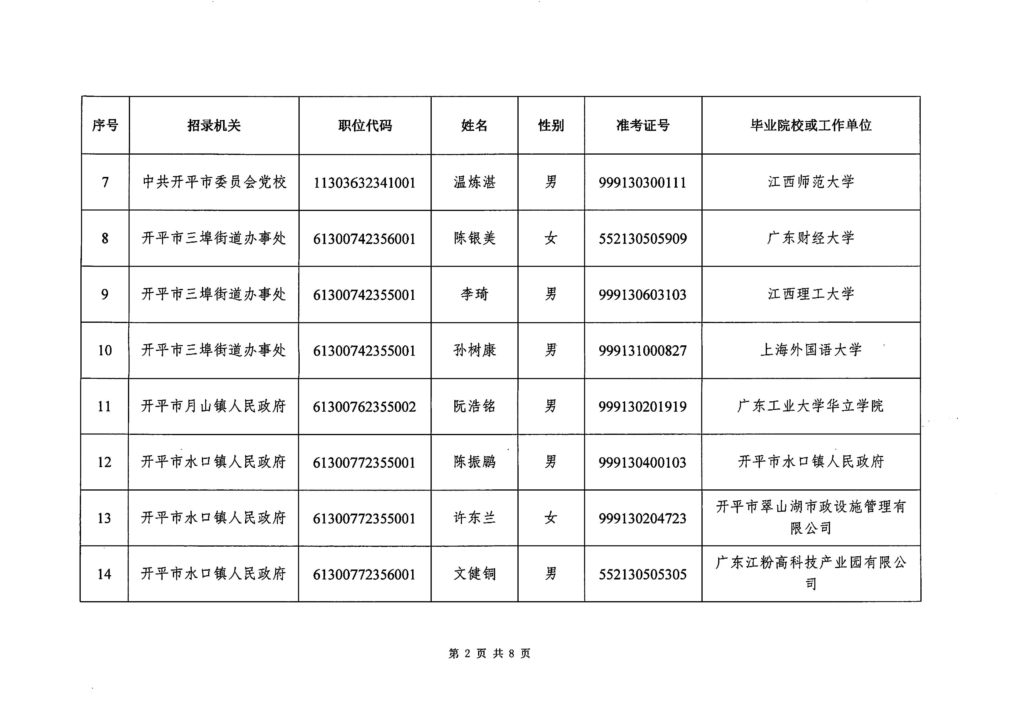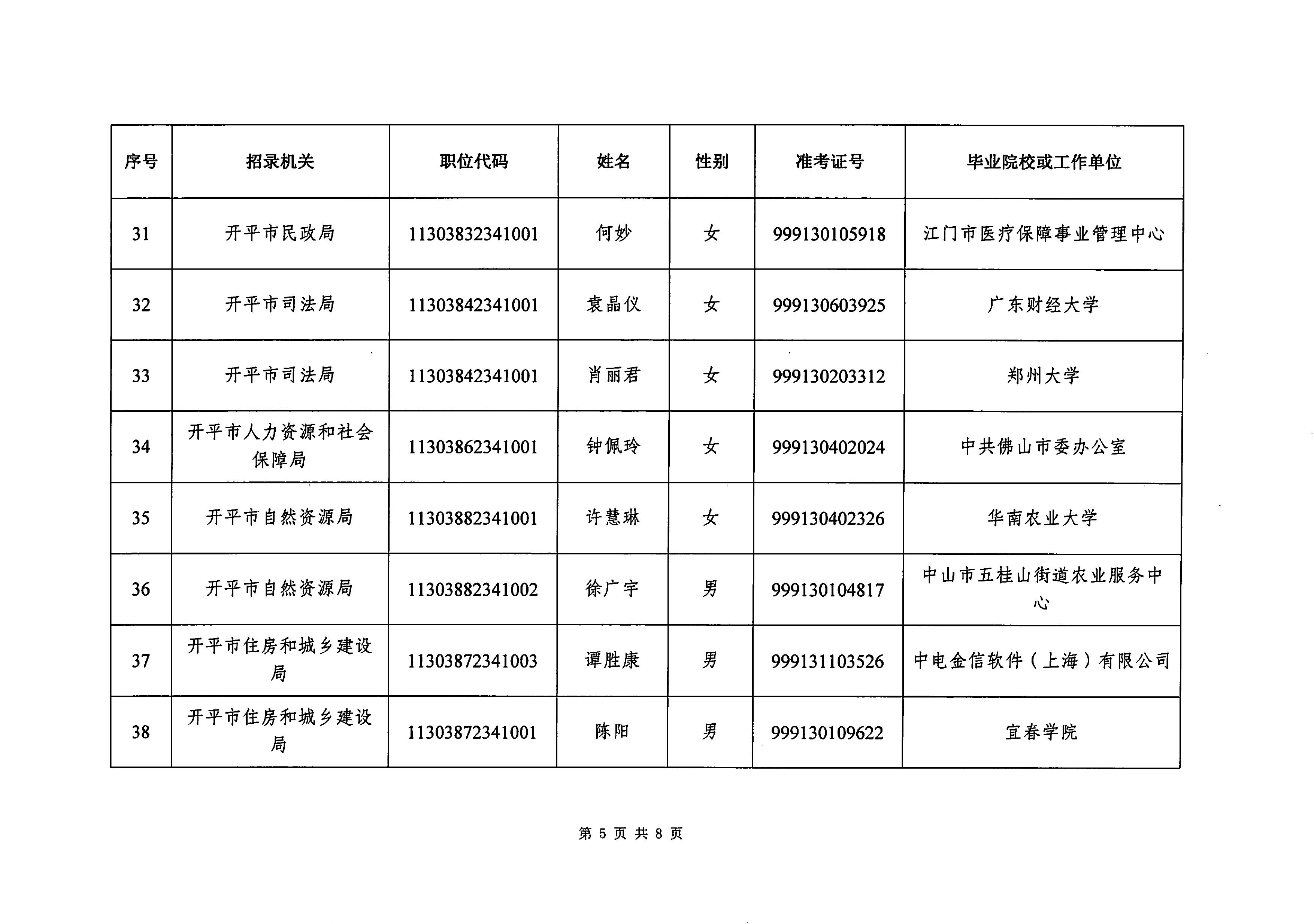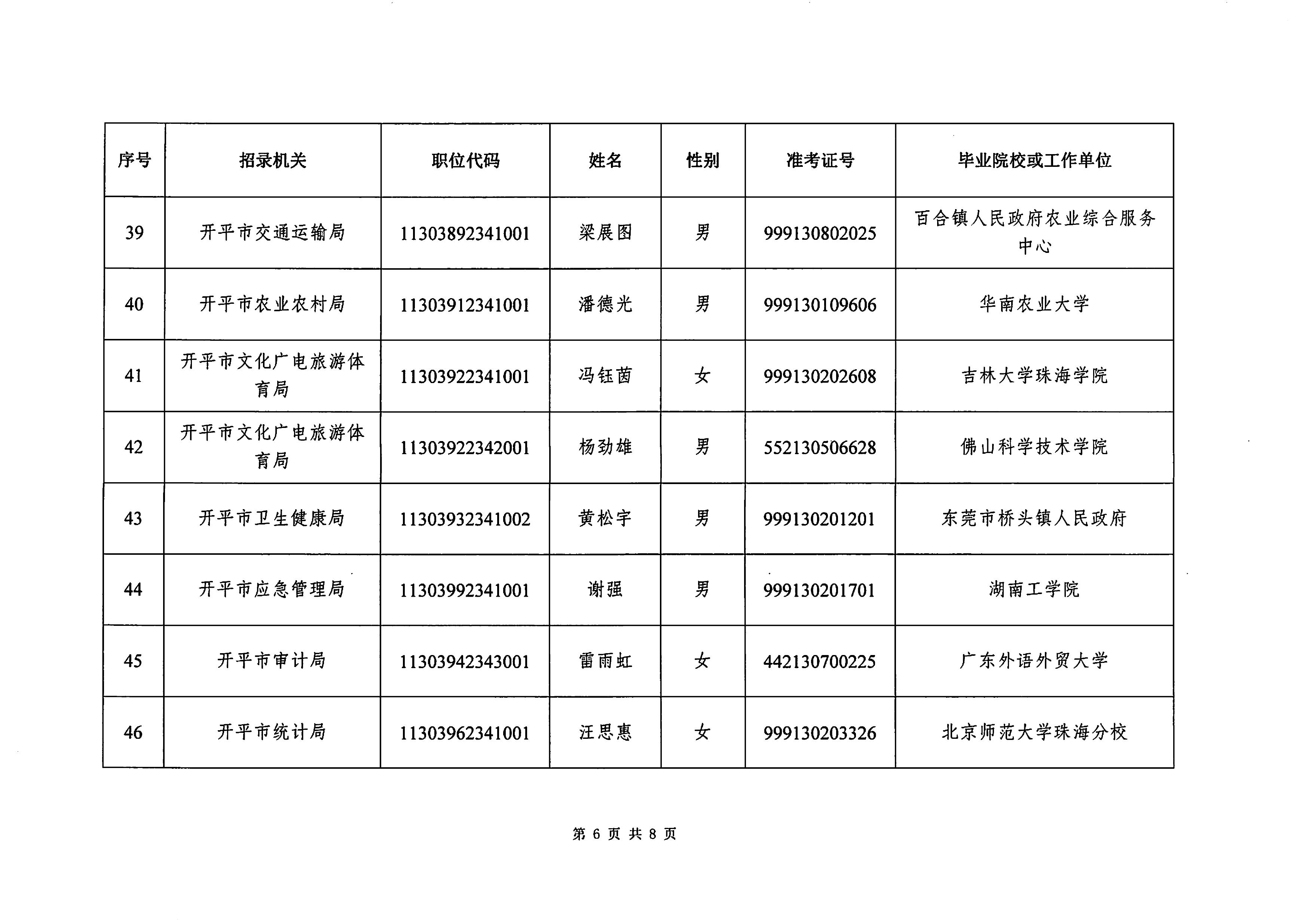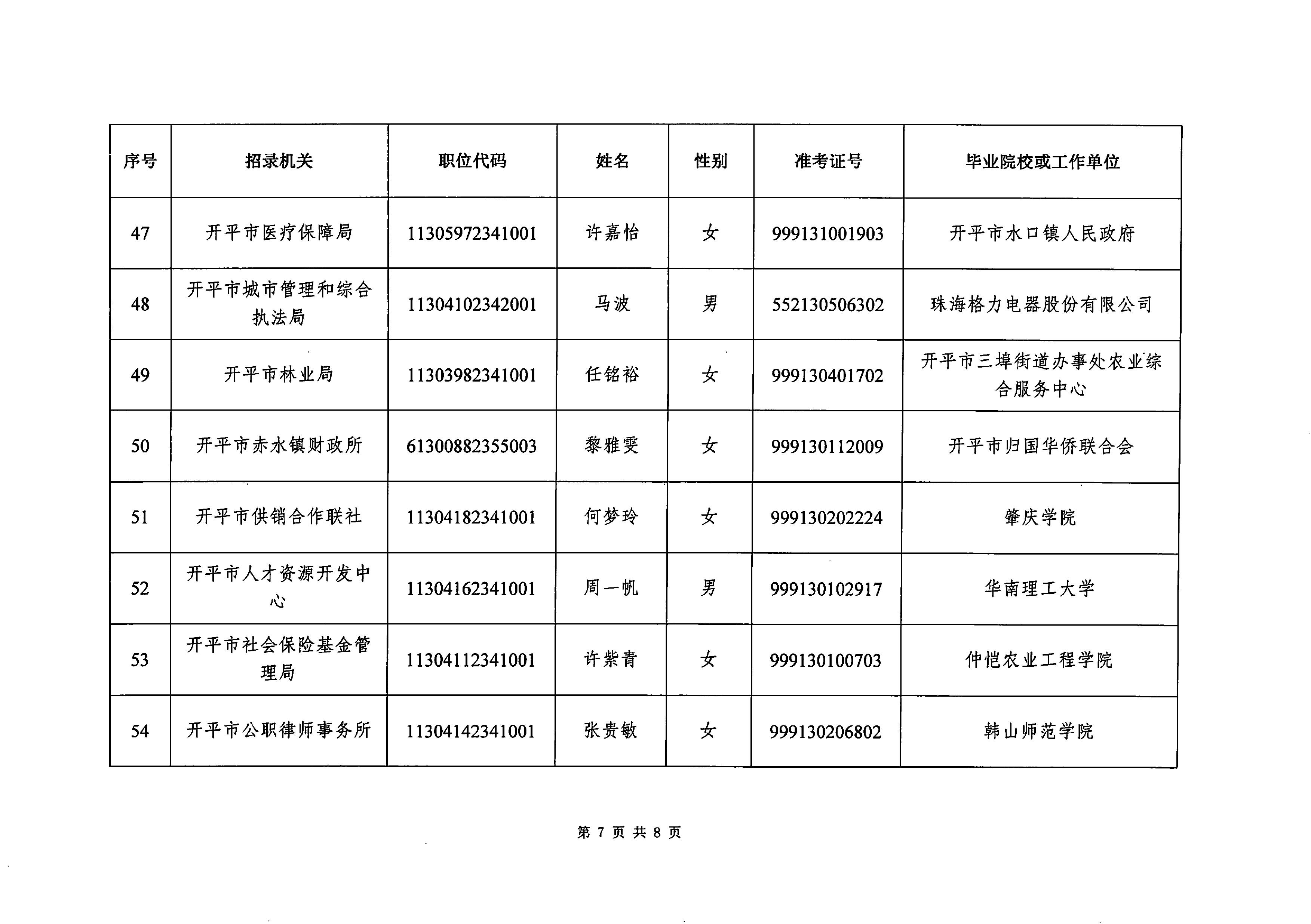 江門市開平市2023年考試錄用公務(wù)員擬錄用人員名單公示(第一批)