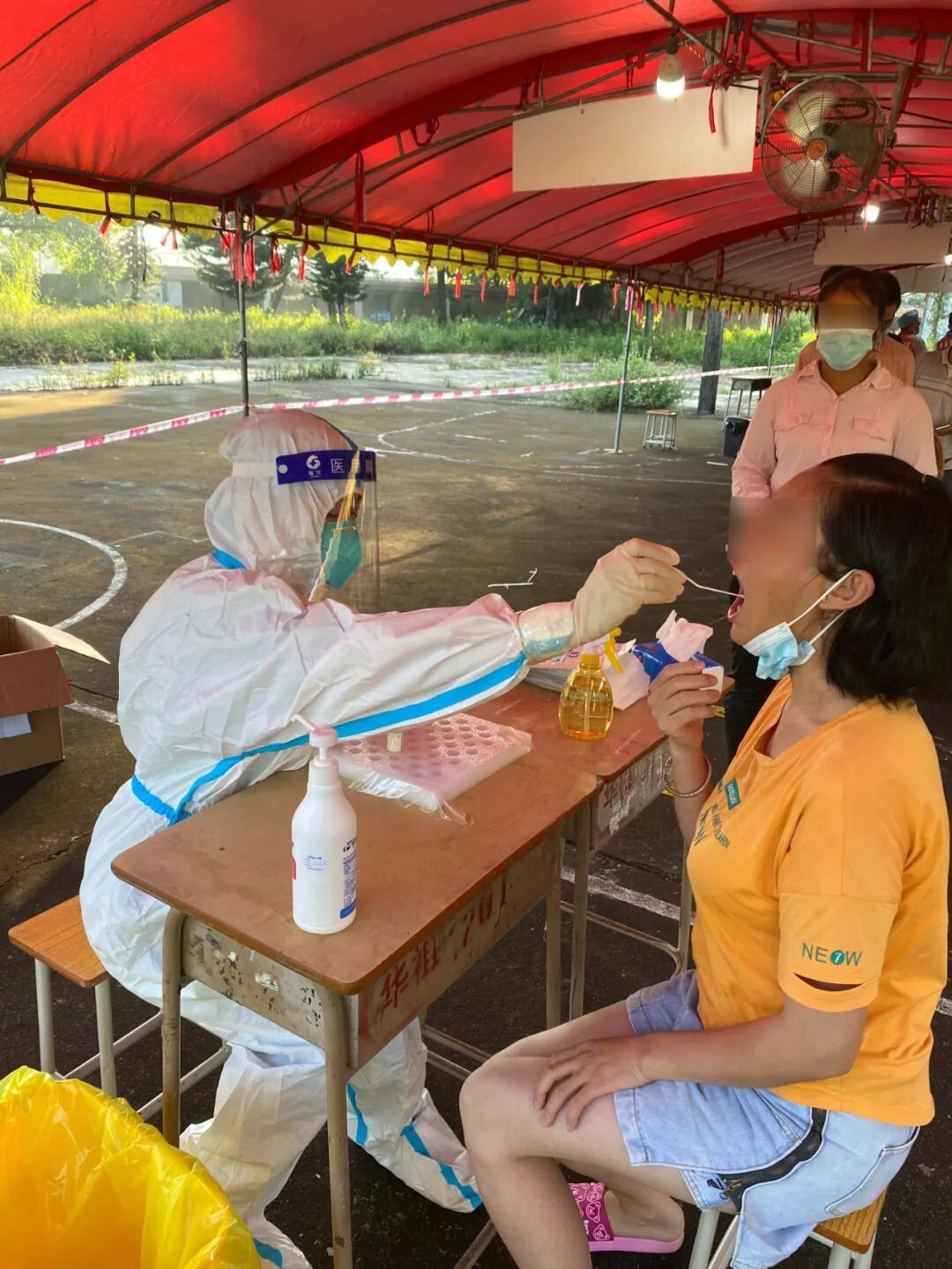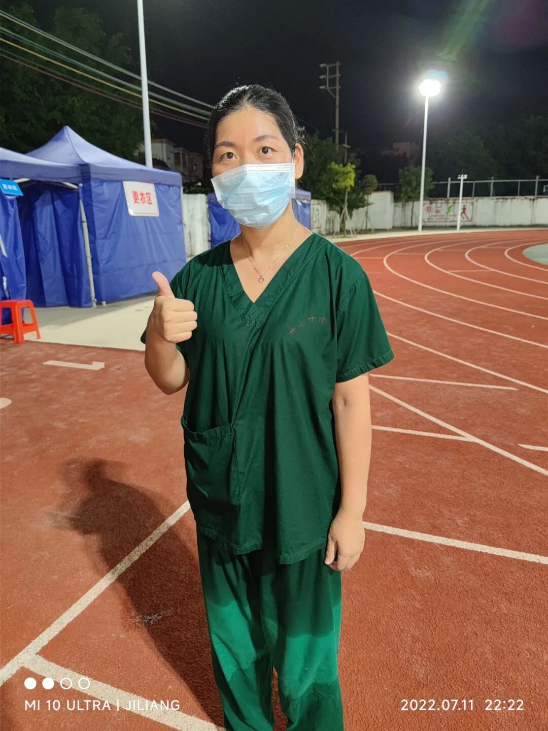 何秀梅是逕頭小學(xué)核酸采樣組的隊(duì)長,她連續(xù)3天帶隊(duì)作戰(zhàn),而她丈夫也是市中心醫(yī)院一名支援核酸采樣的醫(yī)務(wù)人員,這對(duì)夫妻檔表示:“作為醫(yī)務(wù)人員,保障人民群眾生命健康安全是自己職責(zé)所在?!昂涡忝氛f:“這幾天天氣太熱,大家都不容易,我會(huì)在隊(duì)員背后寫上起始工作時(shí)間,科學(xué)管理,并經(jīng)常詢問隊(duì)員的身體狀況,如有不適,立即更換?!?/span>