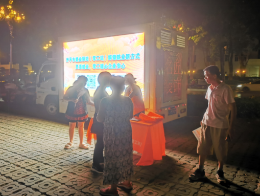 流動(dòng)服務(wù)車配置LED顯示屏+廣播,全方位宣傳“就業(yè)驛站”招聘崗位信息。日間把線下就業(yè)服務(wù)深入我市基層各鄉(xiāng)鎮(zhèn)的市場門口、小公園旁邊等家庭富余勞動(dòng)力常見地方,并結(jié)合實(shí)際篩選出家政、縫制工、小手工等廣受家庭富余勞動(dòng)力歡迎的崗位,促使供需精準(zhǔn)對(duì)接;夜間則到廣場、榕樹下等群眾休閑娛樂聚集的地方,讓群眾在休閑活動(dòng)的同時(shí),可以輕松了解招聘信息,滿足群眾就近求職、了解政策的需求,為就業(yè)服務(wù)“聚人氣”,讓政策宣傳“接地氣”。自流動(dòng)服務(wù)車投入使用以來,流動(dòng)服務(wù)車共開展17場活動(dòng)、共有80家企業(yè)參與并提供近400個(gè)零工就業(yè)崗位,活動(dòng)惠及人數(shù)達(dá)到1078人次,促進(jìn)32人次實(shí)現(xiàn)就業(yè)。切實(shí)打通就業(yè)服務(wù)“最后一公里”,讓“招聘小活動(dòng)”實(shí)現(xiàn)“效能大成果”。