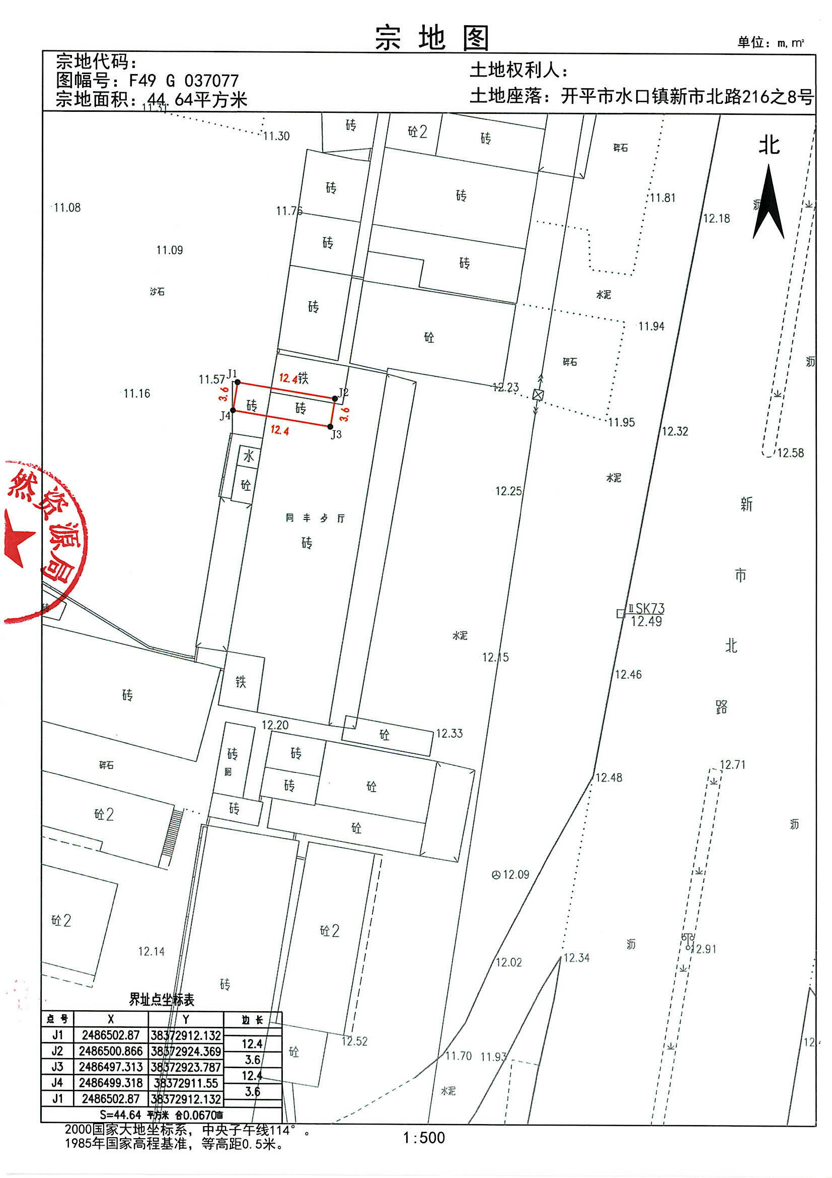 坐落在水口鎮(zhèn)新市北路(現編門牌:開平市水口鎮(zhèn)新市北路216號之8)[開府國用(2001)第00355號]的土地使用權,土地面積44.64平方米。用地單位譚銘巨現申請辦理不動產變更登記。若對該用地界線范圍內的用地或地上建筑物權屬有異議者,自公告之日起15個工作日內向開平市自然資源局水口自然資源所書面提出意見。如無異議,公告期滿即給該單位辦理不動產登記有關手續(xù)。用地界線詳見附圖。