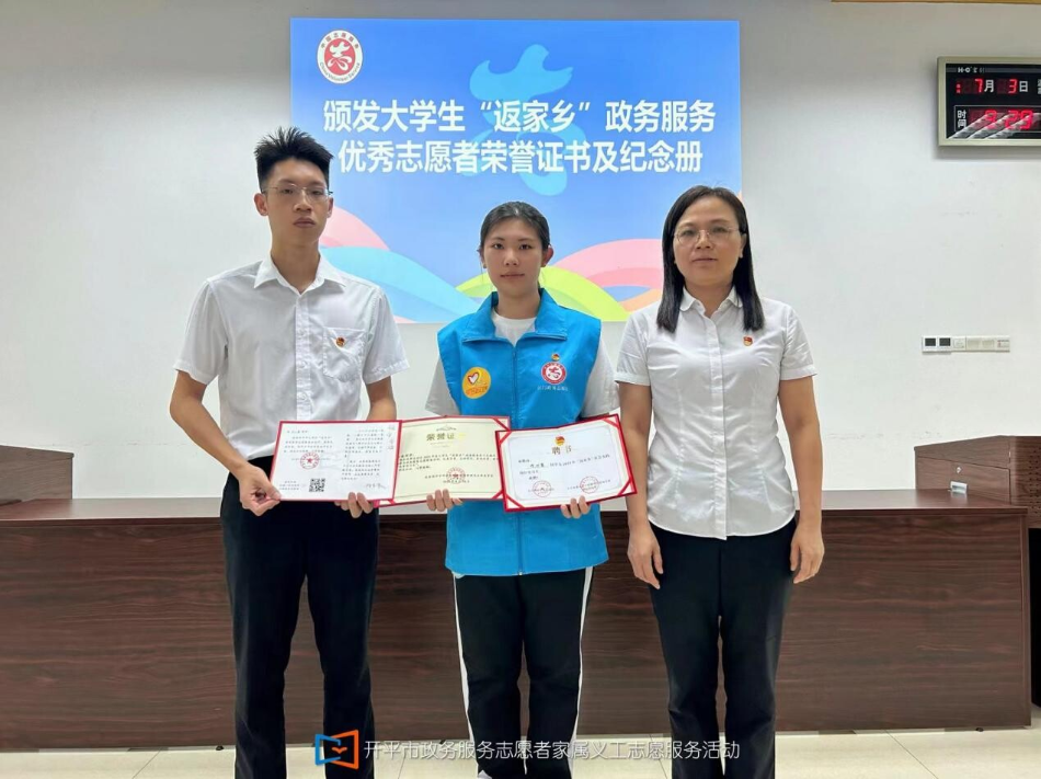 為深入推進“人才倍增”工程,持續(xù)做好“青鳳歸巢”工作,彰顯新時代青年志愿者風采,總結經(jīng)驗成績,激勵先進典型,8月18日上午,市政數(shù)局團支部舉行大學生“返家鄉(xiāng)”政務服務優(yōu)秀志愿者頒獎會,市政數(shù)局、市行政服務中心相關領導和市政數(shù)局團支部書記出席會議。 會上,大學生“返家鄉(xiāng)”政務服務志愿者許心蕾分享了她在市行政服務大廳實習一個月的經(jīng)歷與感想。實習期間,她的工作內容主要是為辦事群眾提供導辦咨詢服務、協(xié)助巡檢服務大廳,充分發(fā)揮所學知識,為政務服務工作建言獻策。她表示:“我深刻體會到了政務服務工作者的不容易和辛勤付出。今后,我會以優(yōu)秀的政務服務工作者為榜樣,不斷完善自我,不斷提高自己的綜合能力”。 市政數(shù)局團支部書記龔嘉秦同志充分肯定了此次大學生“返家鄉(xiāng)”政務服務志愿工作,對政務服務志愿者寄予了更高的希望。會議還為大學生“返家鄉(xiāng)”政務服務優(yōu)秀志愿者頒發(fā)榮譽證書和紀念冊。 市政數(shù)局團支部以開平市“返家鄉(xiāng)”社會實踐活動為契機,于2023年7月21日成立大學生“返家鄉(xiāng)”政務服務志愿服務隊。8月18日,志愿服務隊的第一個暑期志愿服務活動圓滿結束?;顒悠陂g,大學生們回到家鄉(xiāng),走向社會,靠近人民,投身志愿服務,彰顯青春擔當。他們更加深刻理解了“人民公仆”的含義,也更深刻地理解了“奉獻、友愛、互助、進步”的志愿者精神,明白了參與志愿服務是一種能力的鍛煉,更是對社會的一種責任與擔當。 今后,市政數(shù)局團支部將繼續(xù)發(fā)展壯大大學生“返家鄉(xiāng)”政務服務志愿服務隊,引導大學生返鄉(xiāng)發(fā)揮專業(yè)特長,參與志愿服務活動,積極投身家鄉(xiāng)建設發(fā)展。
