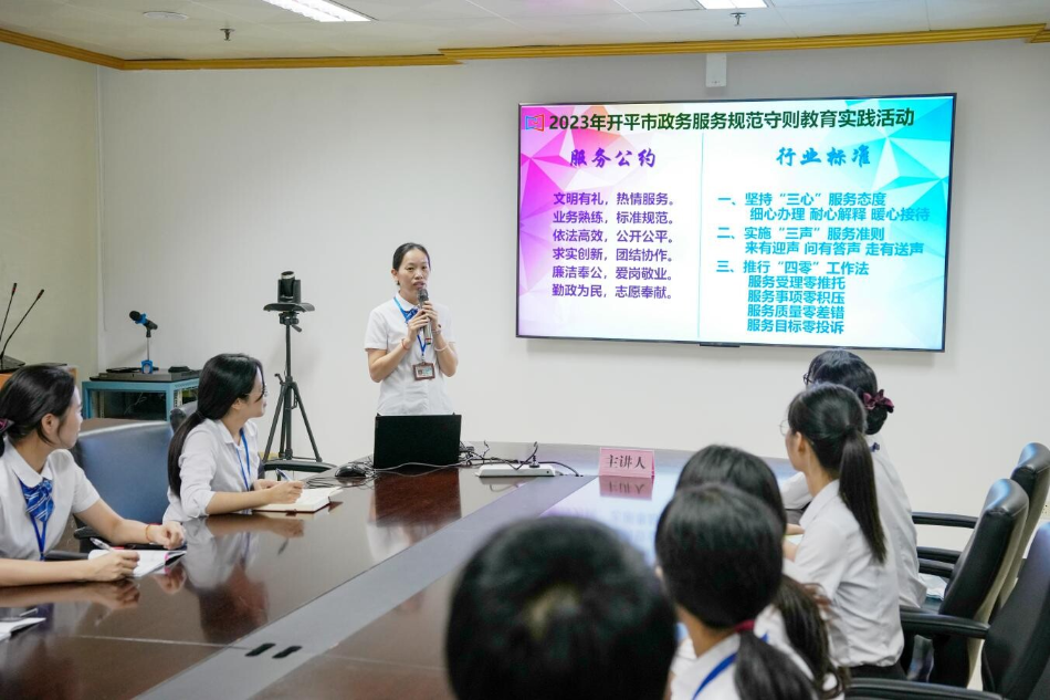 “文明有禮,熱情服務(wù);業(yè)務(wù)熟練,標(biāo)準(zhǔn)規(guī)范;依法高效,公開公平……”一陣陣嘹亮的聲音從活動現(xiàn)場傳來,這是政務(wù)人熟知的服務(wù)公約和行業(yè)標(biāo)準(zhǔn)。8月23日下午,為進(jìn)一步提高窗口工作人員服務(wù)意識,打造一流服務(wù)的標(biāo)桿大廳,市政務(wù)服務(wù)數(shù)據(jù)管理局組織開展政務(wù)服務(wù)行業(yè)規(guī)范培訓(xùn)活動。 本次培訓(xùn)以采取“理論培訓(xùn)+現(xiàn)場模擬解說”的方式進(jìn)行。為了更貼近實(shí)際,充分發(fā)揮老員工的“傳幫帶”作用,活動特邀請了從事窗口服務(wù)工作達(dá)13年之久的導(dǎo)辦窗口組長梁柳開為主講人。梁組長以儀容儀表規(guī)范、文明用語規(guī)范、工作行為規(guī)范、工作場所規(guī)范、工作規(guī)范等“五個規(guī)范”為主要內(nèi)容,結(jié)合實(shí)際案例對窗口人員服務(wù)行為、形象禮儀、文明用語、紀(jì)律要求、禁忌事項等進(jìn)行了生動形象的講解,工作人員認(rèn)真聆聽、仔細(xì)記錄、互動交流,現(xiàn)場氣氛十分熱烈。培訓(xùn)結(jié)束后,工作人員紛紛表示此次培訓(xùn)有理論、有實(shí)訓(xùn),今后將學(xué)以致用,以飽滿的熱情投身于窗口工作,用自己的實(shí)際行動為群眾提供更加用心、貼心、暖心的政務(wù)服務(wù)。 市政務(wù)服務(wù)數(shù)據(jù)管理局將堅持定期舉辦政務(wù)服務(wù)行業(yè)規(guī)范培訓(xùn)活動,以打造一支“業(yè)務(wù)精通、素質(zhì)過硬、服務(wù)高效”的品牌政務(wù)服務(wù)團(tuán)隊為目標(biāo),努力為辦事群眾提供“精準(zhǔn)、特色、高效、暖心”的政務(wù)服務(wù),切實(shí)打通服務(wù)群眾“最后一米”,走實(shí)聯(lián)系群眾“最后一步”,奮力爭創(chuàng)省級標(biāo)桿政務(wù)服務(wù)大廳。