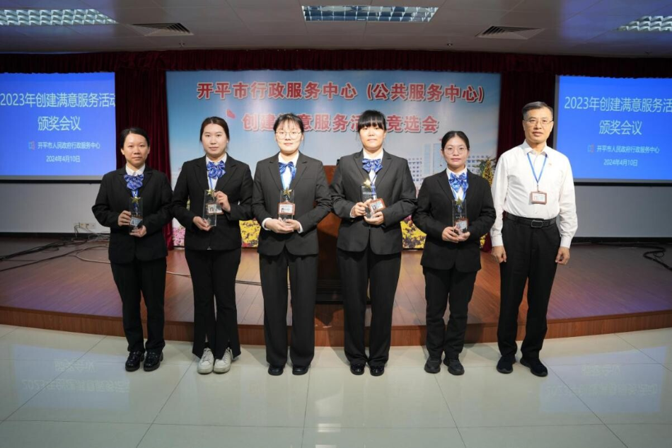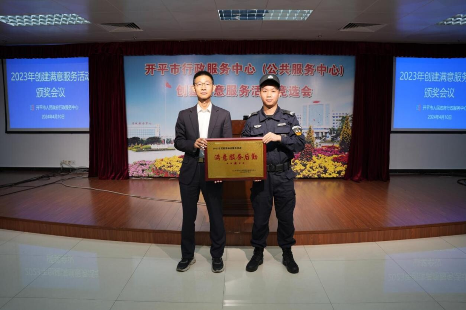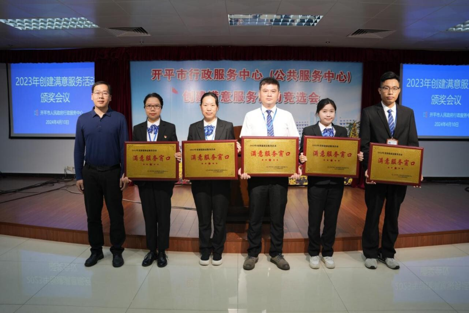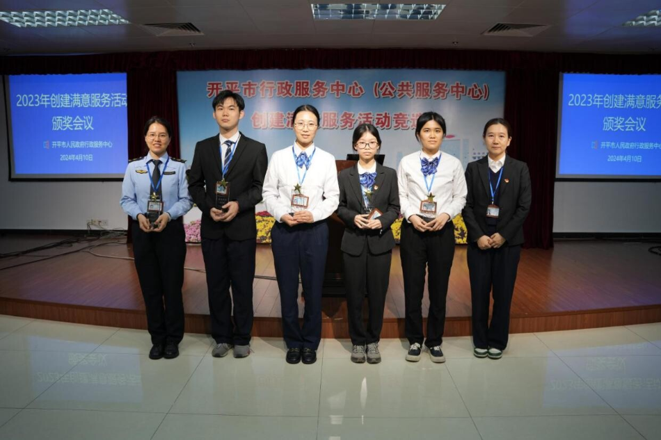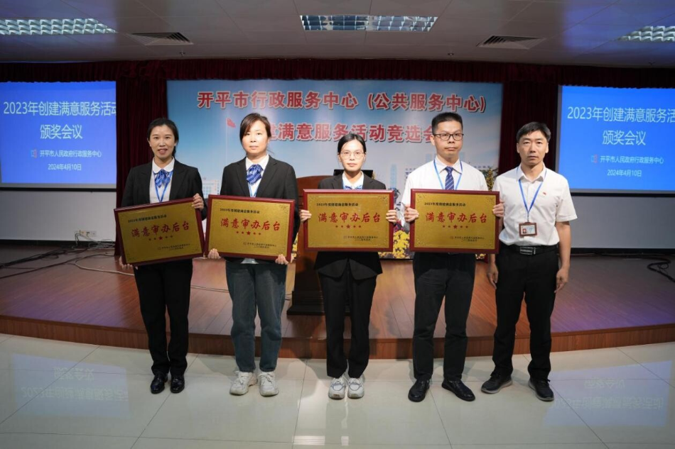 4月10日下午,開平市行政服務中心召開省政務服務技能大賽動員及2023年度創(chuàng)建滿意服務活動表彰大會,市政務服務數據管理局主要領導,行政服務中心全體職工以及中心服務窗口,審辦后臺,服務之星代表參加了此次大會。 會議首先傳達了第一屆全省政務服務技能大賽江門市參賽人員選拔工作要求,詳細分析廣東省標桿政務服務中心指標數據,為全面推動我市政務服務能力提升,樹立政務服務隊伍的良好形象,打造良好營商環(huán)境添磚加瓦。 隨后,進行了2023年度創(chuàng)建滿意服務活動表彰。為加強服務窗口、審辦后臺、服務后勤管理,促進機關作風建設,進一步提升工作人員的政治素質和業(yè)務能力,強化責任意識、服務意識、效率意識和創(chuàng)先爭優(yōu)意識,市行政服務中心深入開展創(chuàng)建滿意服務活動,并評選出5個“滿意服務窗口”、4個“滿意審辦后臺”、1個“滿意服務后勤”以及10名“服務之星”。 市政數局黨組書記、局長龔偉強同志為5個“滿意服務窗口”的獲獎代表頒發(fā)獎牌 市政數局黨組成員、行政服務中心主任顏劍超同志為4個“滿意審辦后臺”獲獎代表頒發(fā)獎牌 市政數局副局長武勝利同志為“滿意服務后勤”代表頒發(fā)獎牌 市行政服務中心副主任周建寧同志為“服務之星”獲獎者頒發(fā)獎杯 市行政服務中心副主任張玉立同志為“服務之星”獲獎者頒發(fā)獎杯 通過此次會議,全體職工將以先進為榜樣,堅持以習近平新時代中國特色社會主義思想為指導,凝心聚力、接續(xù)奮斗,積極提升政務服務能力,在全面建設社會主義現代化國家新征程中展現我們政務服務的新擔當、新作為。