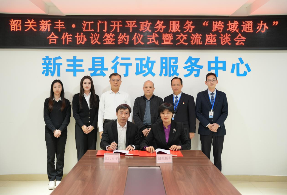 為積極拓展跨區(qū)域政務(wù)服務(wù)合作范疇,切實提升企業(yè)與群眾辦事便利度,開平市行政服務(wù)中心在今年與中山市翠亨新區(qū)建立“跨域通辦”政務(wù)合作關(guān)系的基礎(chǔ)上,將合作范圍拓展至粵北地區(qū),與韶關(guān)市新豐縣行政服務(wù)中心達成合作意向。11月28日,開平市行政服務(wù)中心與新豐縣行政服務(wù)中心正式簽署政務(wù)服務(wù)“跨域通辦”合作協(xié)議,開啟兩地政務(wù)服務(wù)深度協(xié)作新篇章。 此次合作以深化“放管服”改革、優(yōu)化營商環(huán)境為核心目標,積極推進“標準規(guī)范、相互授權(quán)、異地收件、遠程辦理、協(xié)同聯(lián)動”的“跨域通辦”新模式,實現(xiàn)兩地企業(yè)和群眾“就近辦、一次辦”,為兩地企業(yè)和群眾打造更為便捷高效的政務(wù)服務(wù)環(huán)境。 一、構(gòu)建協(xié)同工作機制,保障事項通辦無阻 雙方以“成熟一批,推行一批”為導向構(gòu)建