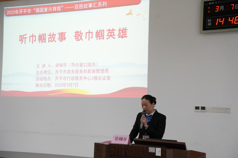 活動中,政務服務大廳導辦咨詢窗口組長梁柳開分享省婦聯(lián)副主席陳曉霞以及自己的政務故事。