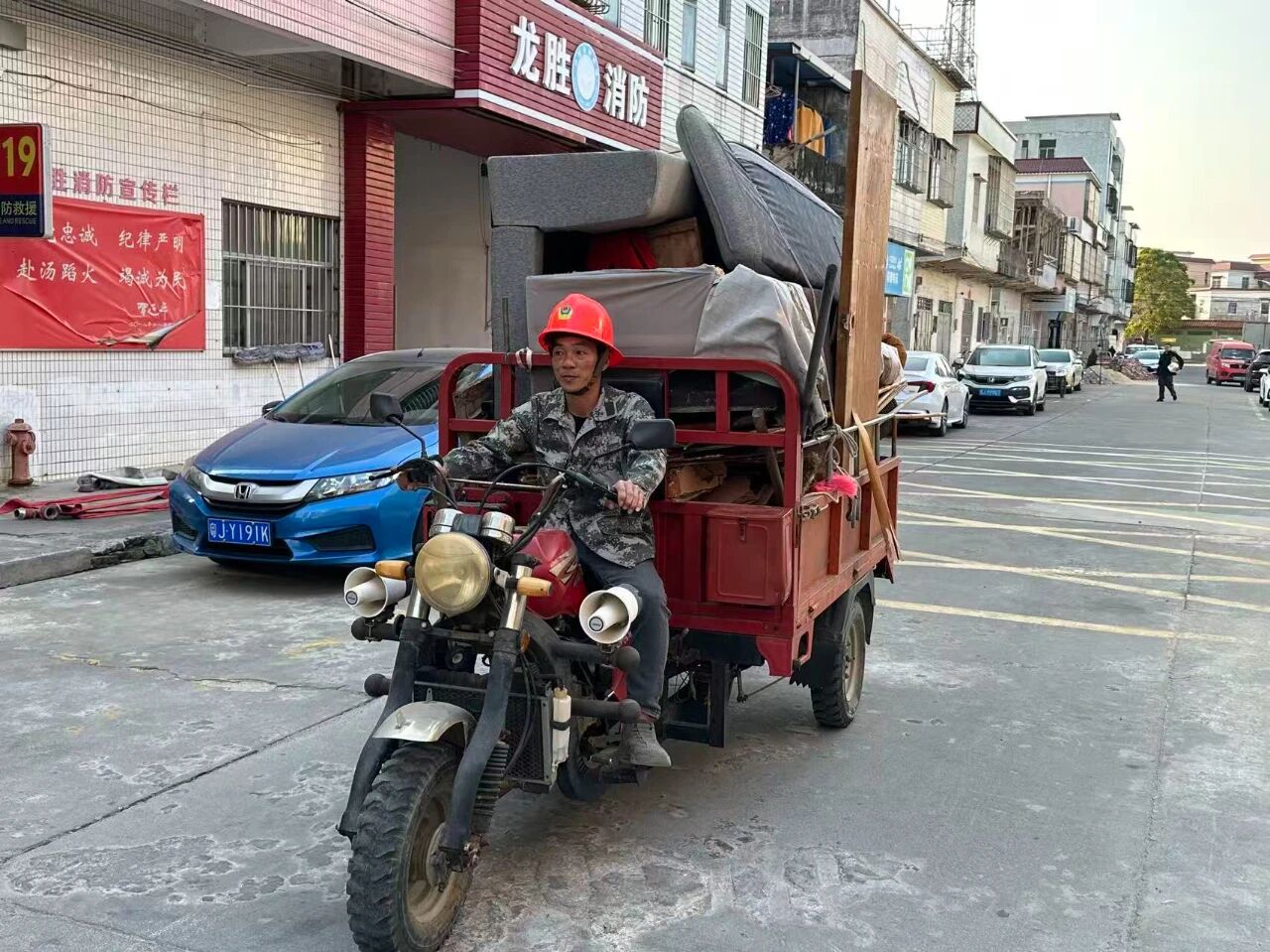 在開平市龍勝墟社區(qū),總能看到一個忙碌的身影,他時而身著迷彩服,在龍勝中學操場上帶領新生軍訓;時而在街巷間俯身清理垃圾,細致監(jiān)督環(huán)境衛(wèi)生;時而駕駛三輪車穿梭于墟鎮(zhèn),收集清運大件廢棄物;時而又背負消殺設備,堅守在防蚊滅蚊一線。這位身影的主人,正是龍勝墟社區(qū)“兩委”干部、退伍軍人——吳潤球。