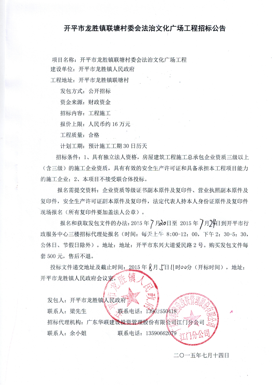 開平市龍勝鎮(zhèn)現(xiàn)龍村委會塘尾村村容村貌整治項目工程招標(biāo)公告