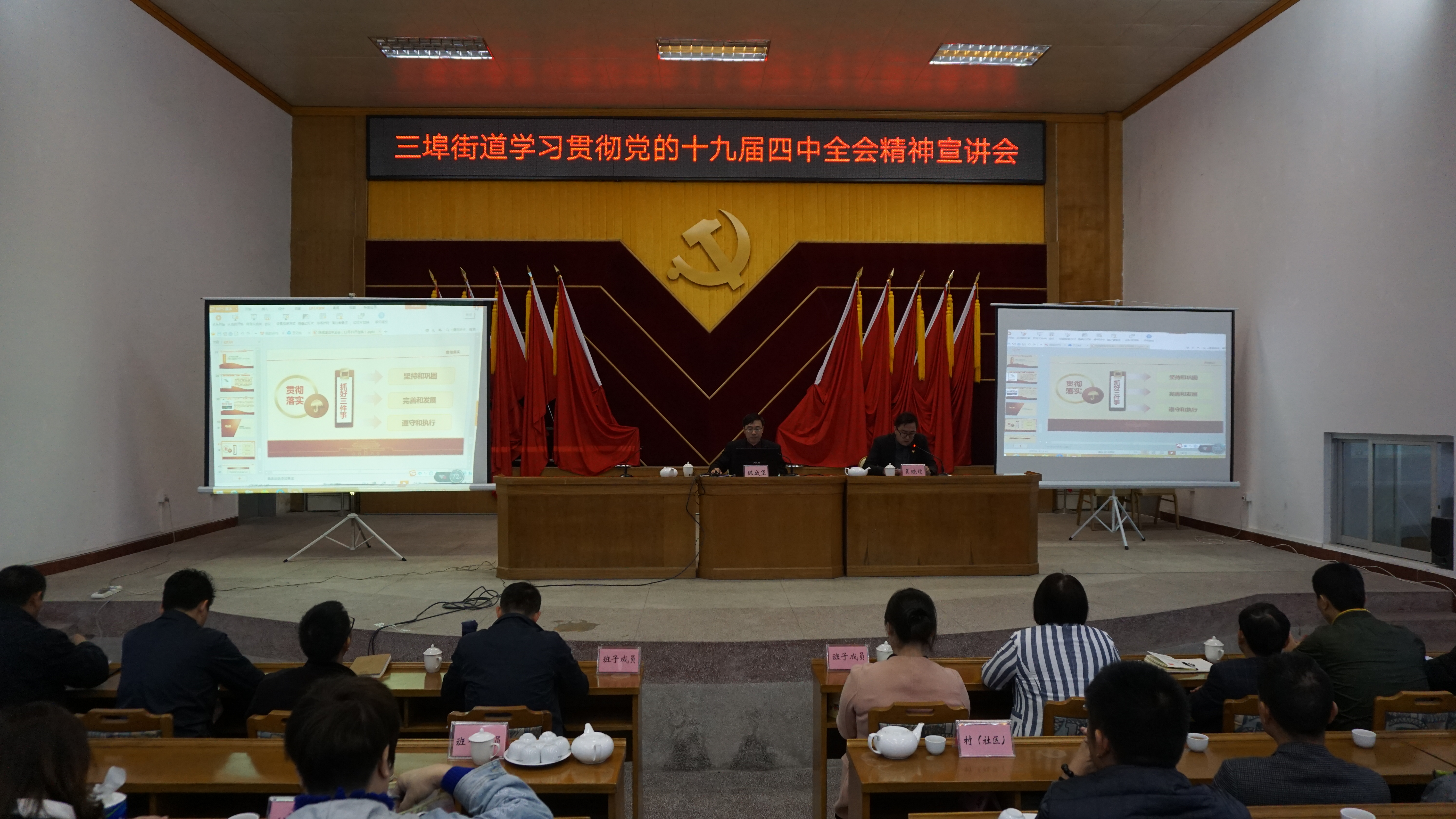 12月20日上午,三埠街道舉辦學(xué)習(xí)貫徹黨的十九屆四中全會精神宣講會,街道全體領(lǐng)導(dǎo)班子,機(jī)關(guān)和事業(yè)單位干部職工,各村(社區(qū))、基層站所和“兩新”企業(yè)等黨組織負(fù)責(zé)人共160多人參加了宣講會。