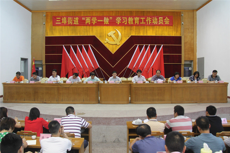 為認真貫徹落實上級關(guān)于“兩學(xué)一做”工作部署,5月9日下午,三埠街道召開 “兩學(xué)一做”學(xué)習(xí)教育工作動員會。街道全體黨政班子成員、機關(guān)副股級以上黨員干部、各村(社區(qū))黨組織書記和組織委員、基層站所以及“兩新”黨組織書記共140多人參加了會議。會議由街道黨工委副書記麥振廣主持。