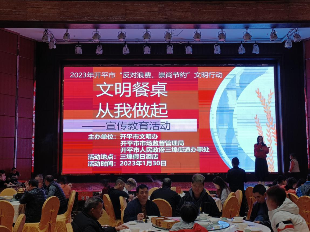 民以食為天,食以儉養(yǎng)德。吃飯是社會(huì)生活的重要部分,餐桌文明更是社會(huì)文明的重要體現(xiàn)。近期,三埠街道辦事處聯(lián)合市市場(chǎng)監(jiān)督管理局,在假日酒店開展“文明餐桌 從我做起”宣傳教育活動(dòng),以文明節(jié)儉新風(fēng)尚助力我市創(chuàng)文,落實(shí)反對(duì)浪費(fèi)、崇尚節(jié)約文明行動(dòng)。