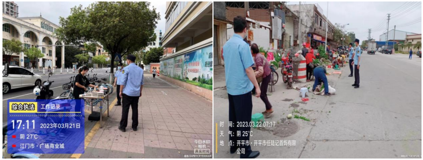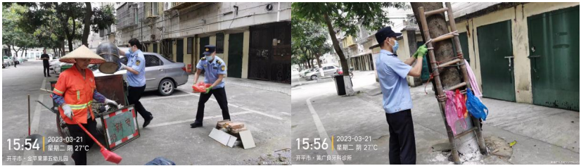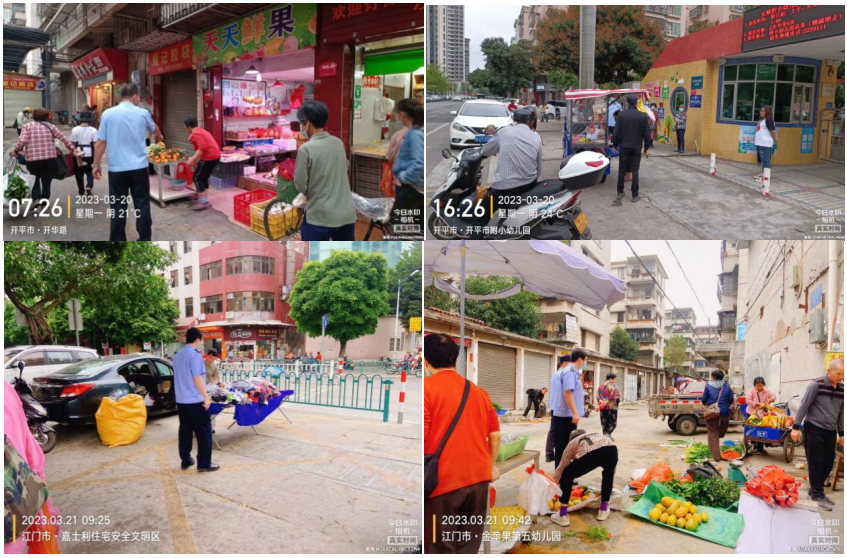 祥興市場、銀海市場、逕頭市場等農(nóng)貿(mào)市場周邊及轄區(qū)背街小巷流動攤位較多,人群密集,占道經(jīng)營、違規(guī)擺賣等監(jiān)管頑疾屢見不鮮,影響市容市貌同時,更妨礙車輛和行人通行安全,屬于市容管理的重難點地段。今年以來,三埠街道采取機動巡查和集中整治相結(jié)合,常態(tài)化實施沿街商戶店外經(jīng)營和違規(guī)設(shè)攤行為糾正和規(guī)范,強化固守巡查力度,持續(xù)加強對市容環(huán)境的巡查監(jiān)管。