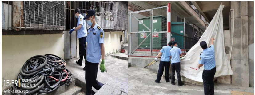 今年以來,執(zhí)法辦、執(zhí)法服務(wù)中心從重實干、謀實效出發(fā),全面加強綜合執(zhí)法力度。主動下沉力量到社區(qū)一線,在街道社區(qū)直聯(lián)組和社區(qū)干部前期摸排出的樓道黑點和背街小巷重點點位問題臺賬的前提下,集中力量對東郊新村、新昌康樂街周邊公共地方堆放雜物、霸占車位等情況進行統(tǒng)一處理,并聯(lián)合各方力量拆除破舊消防箱等設(shè)施,為文明創(chuàng)建注入“執(zhí)法力量”。