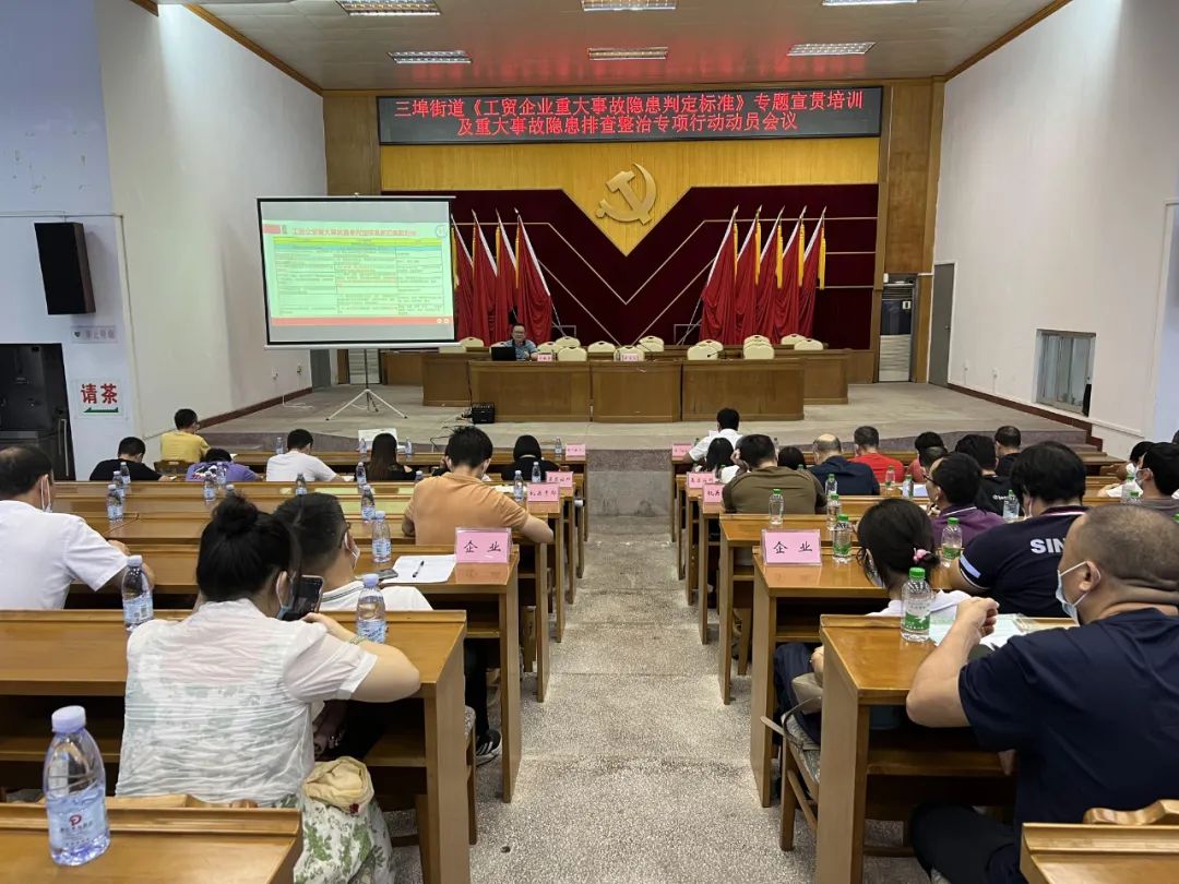 近日,應急管理部印發(fā)了《工貿(mào)企業(yè)重大事故隱患判定標準》(中華人民共和國應急管理部令第10號),自2023年5月15日起施行。 為進一步提升應急管理人員對重大風險辨識管控的能力,深化隱患排查治理實效,5月16日上午,三埠街道召開《工貿(mào)企業(yè)重大事故隱患判定標準》專題宣貫培訓及重大事故隱患排查整治專項行動動員會議,推動企業(yè)落實安全生產(chǎn)主體責任,及時消除各類安全隱患,助力企業(yè)高質(zhì)量發(fā)展。街道安委會成員部門、各村(社區(qū))、基層站所、企業(yè)等負責人共100多人參加了會議。 街道黨工委委員、辦事處副主任周覺能通報了近期國內(nèi)多起較大以上安全事故,總結(jié)了三埠街道4月以來的安全生產(chǎn)和消防安全工作情況,并部署了下一階段的安全生產(chǎn)和消防安全工作。會議以近期國內(nèi)安全事故為鑒,提出了七方面工作要求:一是整治工貿(mào)企業(yè)重大事故隱患。各工貿(mào)企業(yè)要落實安全生產(chǎn)主體責任,認真學習《工貿(mào)企業(yè)重大事故隱患判定標準》,按照國務院安委會印發(fā)的《全國重大事故隱患專項排查整治2023行動總體方案》,開展重大事故隱患排查整治工作。二是嚴防各類火災事故。各企業(yè)和街道應急、消防等相關部門要加強對工貿(mào)企業(yè)的檢查督導,嚴查違規(guī)用火用電等消防安全問題。從嚴整治違規(guī)住人“三小”場所,采取安裝可聯(lián)網(wǎng)式無線煙感器、實體墻封堵、安裝防火門、開設逃生窗和配備滅火器材等技防措施,消除安全隱患。三是嚴防分租式廠房事故。各村委會(社區(qū))要組織人員,全面排查分租式廠房安全狀況,堅決整治違規(guī)分租、違規(guī)電氣焊、違規(guī)儲存易燃易爆物品、違規(guī)占用堵塞逃生通道等“廠中廠”常見的安全亂象。四是嚴防交通安全事故。著力加強道路交通安全防范,同時要加強客船、漁船等重點船舶的安全監(jiān)管。五是嚴防建筑施工事故。緊抓建筑施工安全各項工作,嚴厲打擊各類違建行為。六是抓實抓細三防工作。各村委會(社區(qū))、各相關部門要扎實做好防風防汛的應急準備,進一步完善三防工作各項制度和相關設施設備,做好三防值班值守工作。七是廣泛開展安全宣傳。5月12日是我國第15個全國防災減災日,今年6月是第22個全國“安全生產(chǎn)月”。要以此為契機,加強防災減災和安全生產(chǎn)宣傳,增強企業(yè)群眾關于防災減災和安全生產(chǎn)的意識。