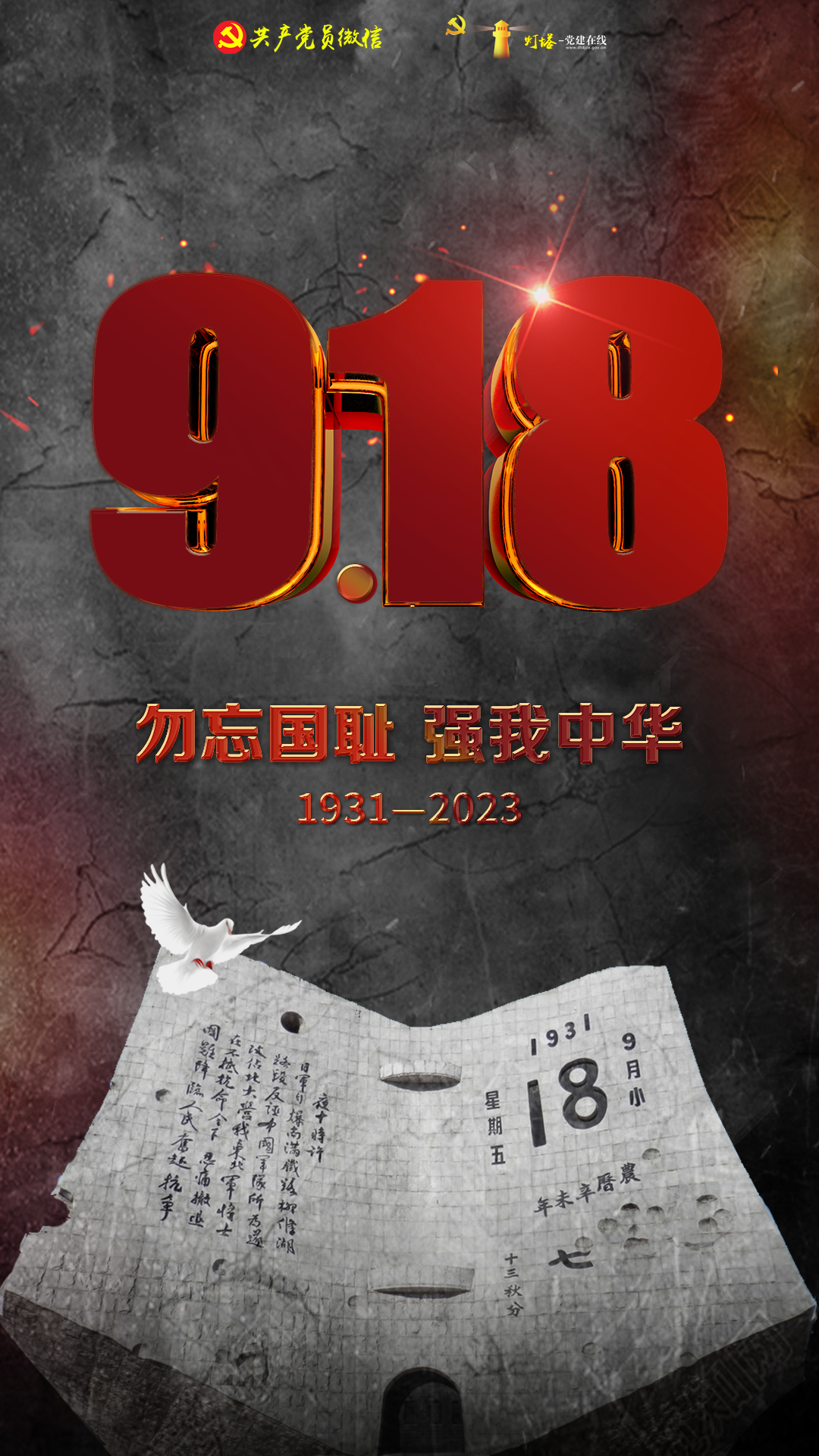碑形為翻到1931年9月18日的臺歷