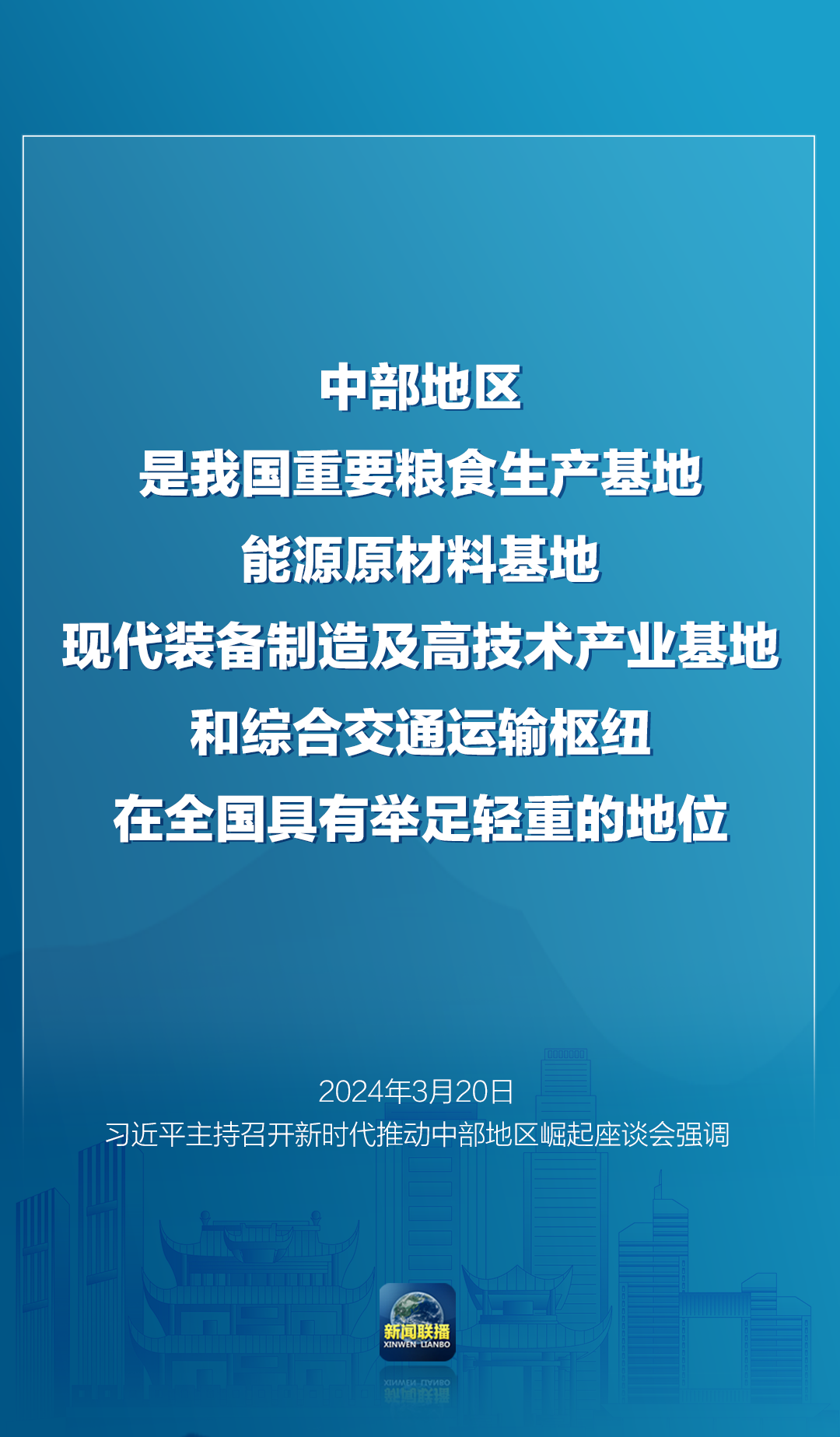 中共中央總書記、國家主席、中央軍委主席習(xí)近平20日下午在湖南省長沙市主持召開新時代推動中部地區(qū)崛起座談會并發(fā)表重要講話。他強(qiáng)調(diào),中部地區(qū)是我國重要糧食生產(chǎn)基地、能源原材料基地、現(xiàn)代裝備制造及高技術(shù)產(chǎn)業(yè)基地和綜合交通運(yùn)輸樞紐,在全國具有舉足輕重的地位。要一以貫之抓好黨中央推動中部地區(qū)崛起一系列政策舉措的貫徹落實,形成推動高質(zhì)量發(fā)展的合力,在中國式現(xiàn)代化建設(shè)中奮力譜寫中部地區(qū)崛起新篇章。
