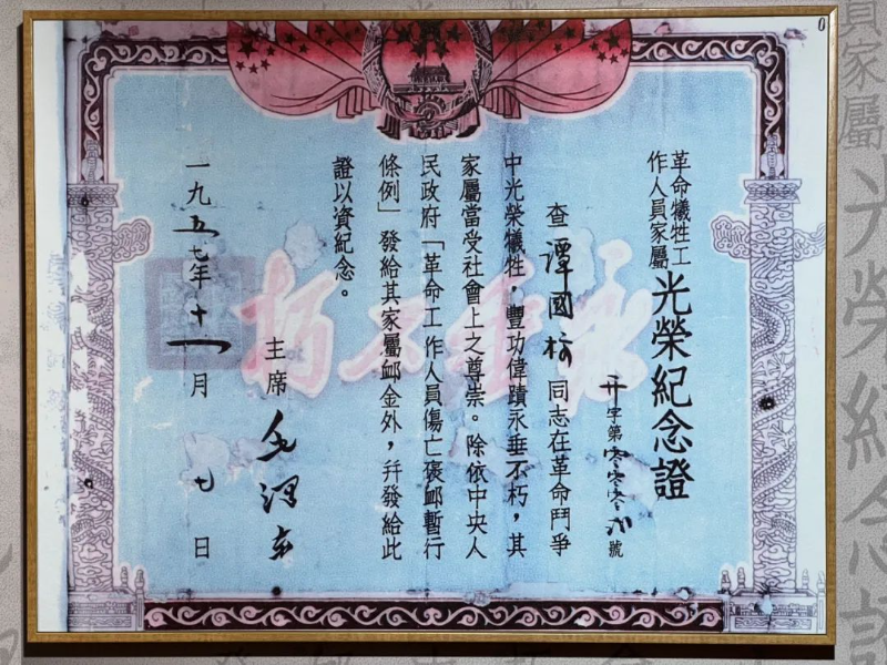 譚國(guó)標(biāo)光榮紀(jì)念證