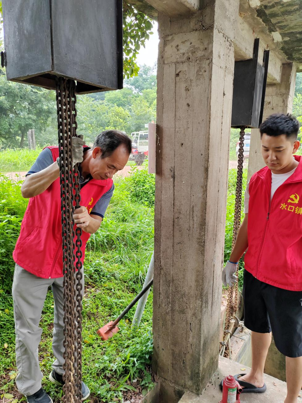 臺風來臨前,在永樂村委會,網格員鄺奇發(fā)、鄺炎棋頂著烈日酷暑實地檢查潭江村水閘啟閉機工作情況,確保水閘正常運行?!拔覀兠芮嘘P注著臺風動態(tài),嚴格執(zhí)行應急預案,加強對水閘、堤圍的巡視,維護保養(yǎng)設備,全力以赴做好防汛防臺工作?!?/span>
