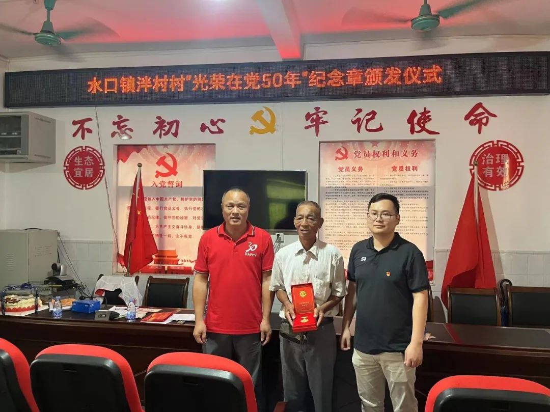 為進(jìn)一步增強(qiáng)老黨員們的榮譽(yù)感、歸屬感、使命感,激發(fā)全鎮(zhèn)黨員干部勇于擔(dān)當(dāng)、砥礪奮進(jìn),水口鎮(zhèn)黨委組織駐村領(lǐng)導(dǎo)、干部分別到各村(社區(qū))對31名黨齡達(dá)到50年、一貫表現(xiàn)良好的老黨員進(jìn)行走訪并頒發(fā)“光榮在黨50年”紀(jì)念章。