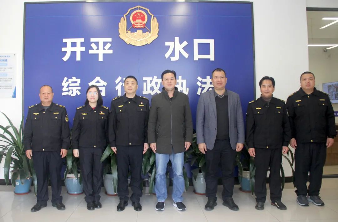 在水口鎮(zhèn)綜合行政執(zhí)法辦公室(綜合行政執(zhí)法隊(duì)),司徒錦泉向一線執(zhí)法人員致以節(jié)日問候,關(guān)切地詢問他們的身體狀況及生活情況,感謝他們?yōu)槊利愛祖?zhèn)建設(shè)所付出的辛勤勞動(dòng)和汗水。司徒錦泉表示,水口鎮(zhèn)擁有喜慶祥和的春節(jié)氛圍和干凈整潔的人居環(huán)境,有賴于大家共同的配合和不懈的努力,希望大家注意勞逸結(jié)合,再接再厲,繼續(xù)發(fā)揚(yáng)無私奉獻(xiàn)的精神,為美麗水口共同奮斗。