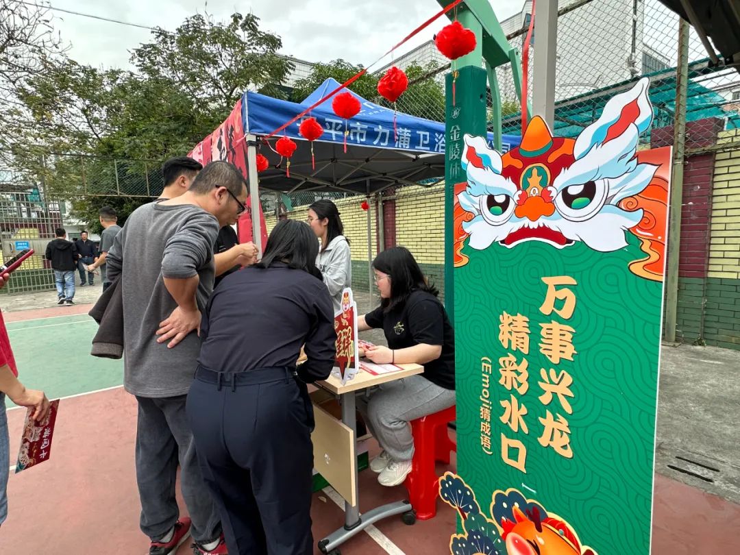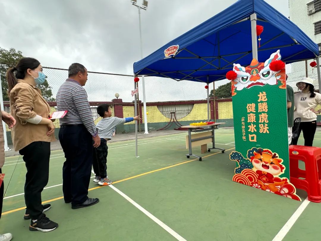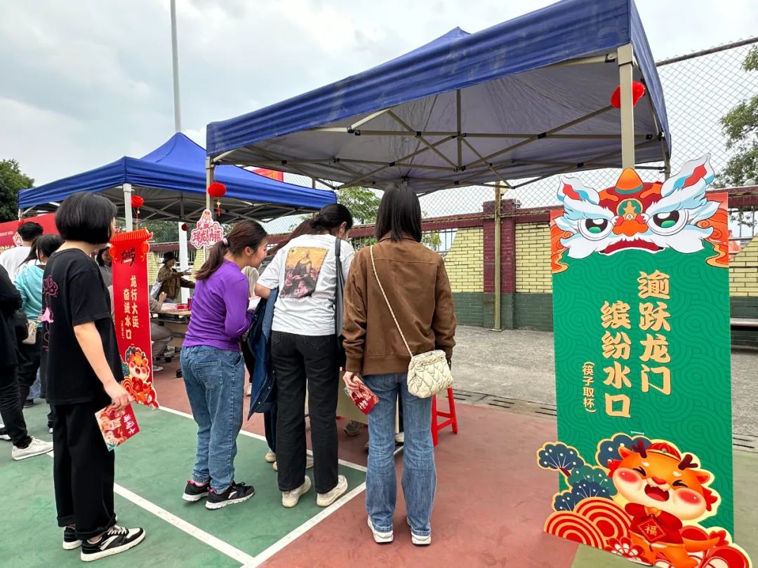 游園活動現(xiàn)場設(shè)置了豐富的游戲項目,分別是“欣欣向龍,幸福水口(粘球飛鏢)”“龍飛鳳舞,魅力水口(紙杯抽紙)”“雙龍戲珠,團(tuán)結(jié)水口(旱地龍舟)”“龍行大運,奮進(jìn)水口(滾滾樂)”“逾躍龍門,團(tuán)結(jié)水口(筷子取杯)”“龍騰虎躍,健康水口(乒乓球五子棋)”“萬事興龍,精彩水口(emoji猜成語)”“好運龍龍,活力水口(套圈圈)”“‘龍’重登場。啟起新歲(祝福寄語)”。