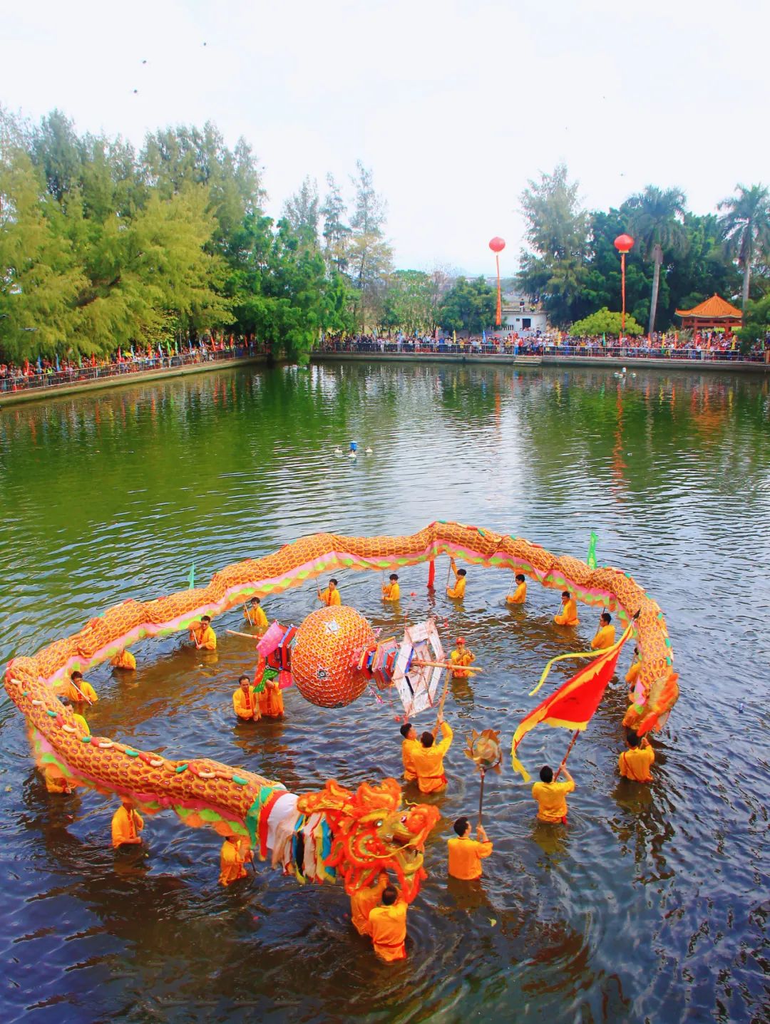“龍燈戲水”是活動(dòng)一大亮點(diǎn)。金龍村俗稱“??诖濉?,為避“送燈送龍入牛口”之忌,巨大的花燈要繞道而行,涉水過(guò)塘而入村?;铎`活現(xiàn)的舞龍和花燈表演,令觀眾熱血沸騰,引來(lái)陣陣掌聲與喝彩。