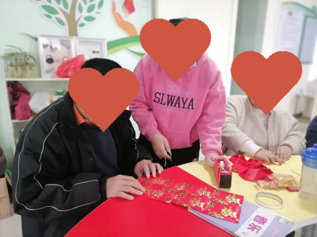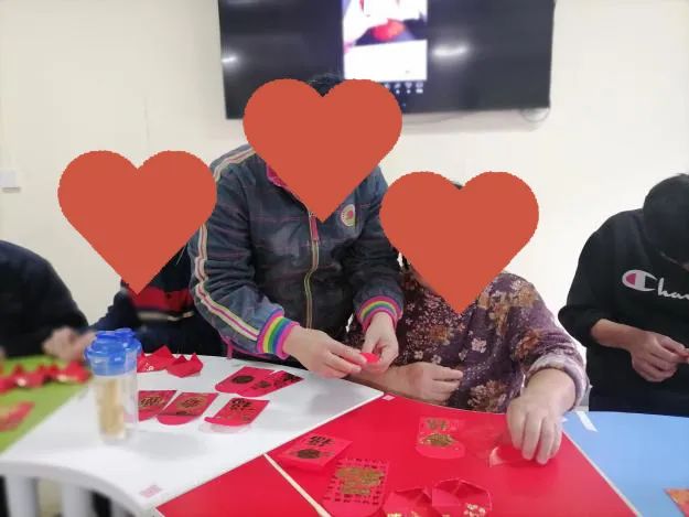 在活動的第二環(huán)節(jié)中,學員阿瓊和阿芳擔分別當起小老師的角色,利用過年收獲的利是封,教大家制作起了各式各樣的燈籠。學員們相互分工,互相合作,有步驟地將利是封折角、裝訂、黏合,經(jīng)過大家的一番努力創(chuàng)作,“大燈籠”“燈籠錢幣”等應運而生。