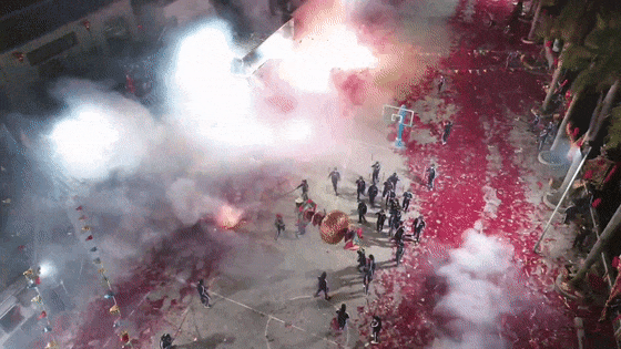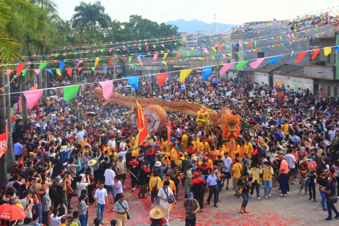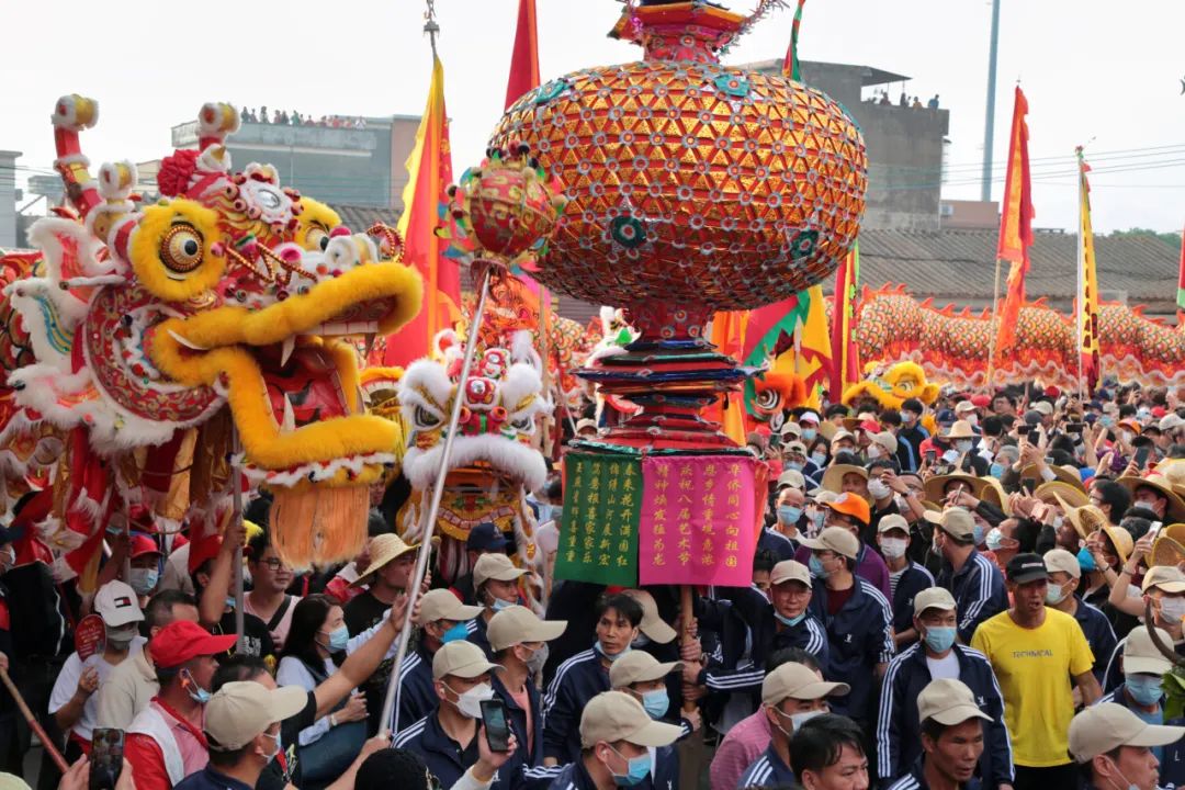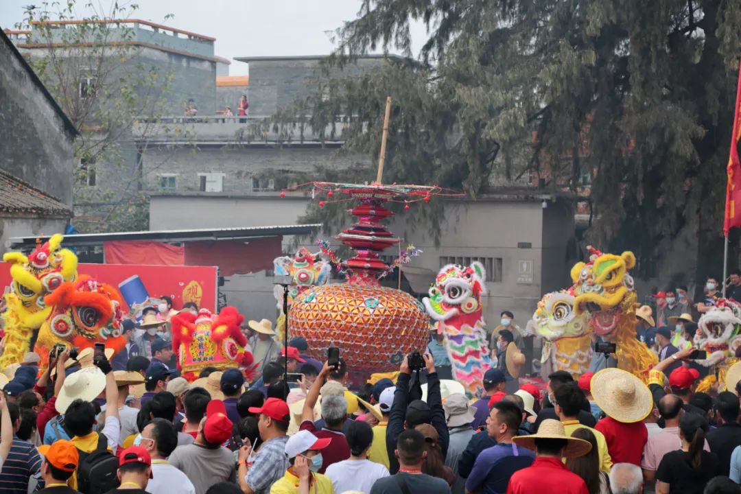 起燈儀式后,三個大花燈在人們的擁簇下,沿著各自的路線,遍游四十二個村莊。每當(dāng)花燈到達(dá)一個新的村莊,村民們都會舞動醒獅,在村口熱烈迎接。