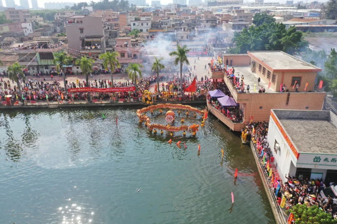 巨型花燈在金龍村穿水而過。圖源:開平水口