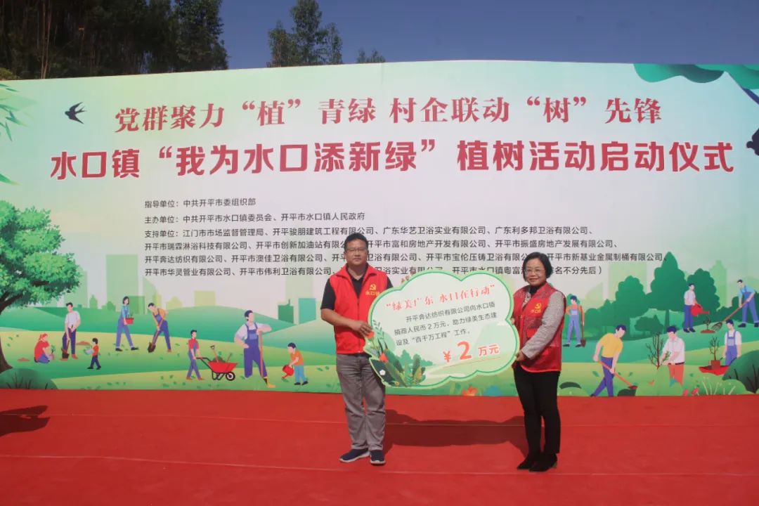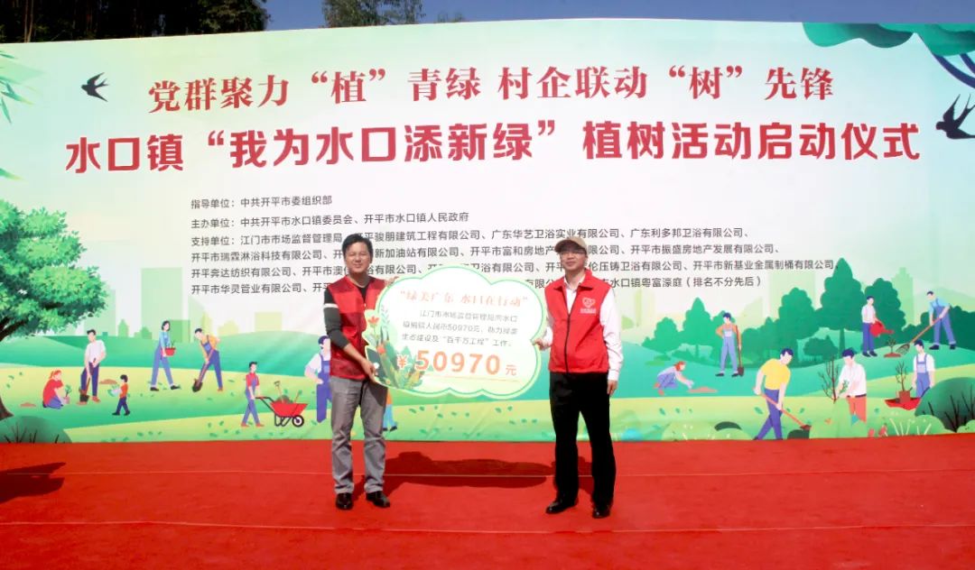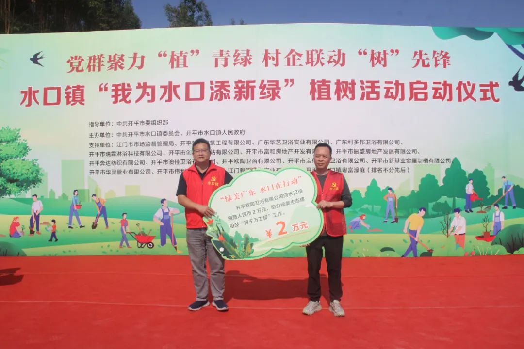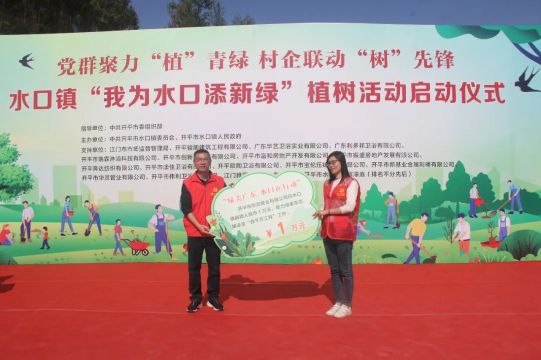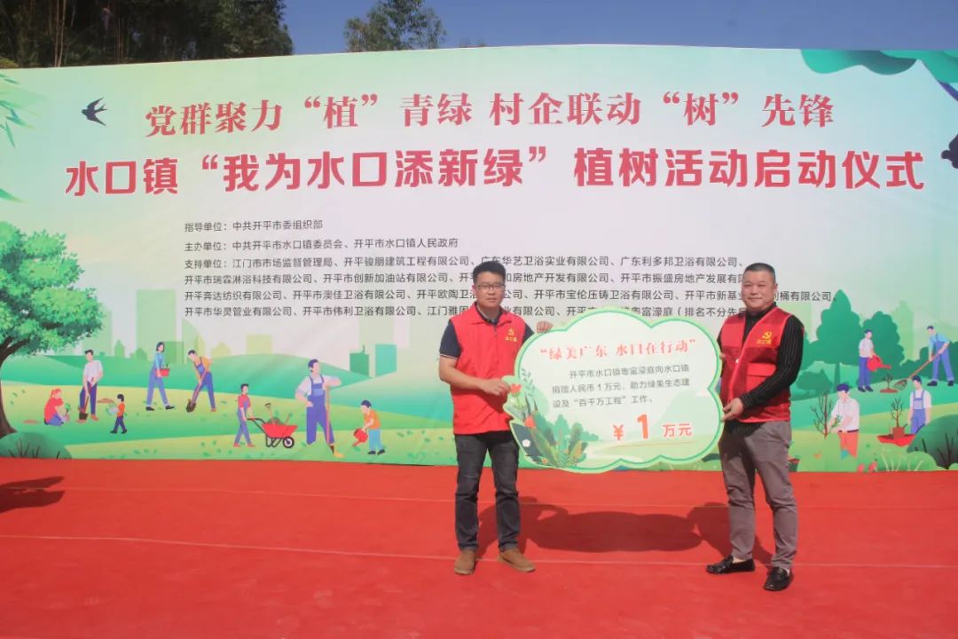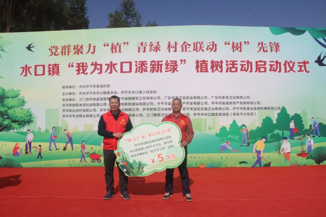 儀式上,結(jié)對幫扶單位江門市市場監(jiān)督管理局和16家愛心企業(yè)向水口鎮(zhèn)人民政府捐贈人民幣共計(jì)75.097萬元,定向用于水口鎮(zhèn)鄉(xiāng)村綠化項(xiàng)目。