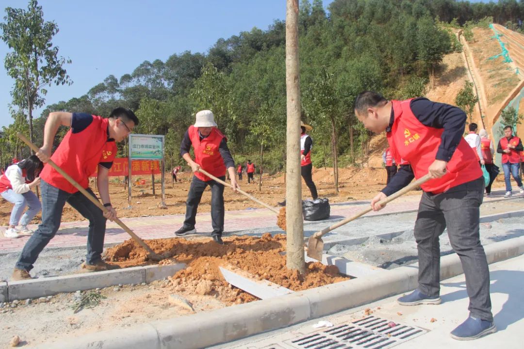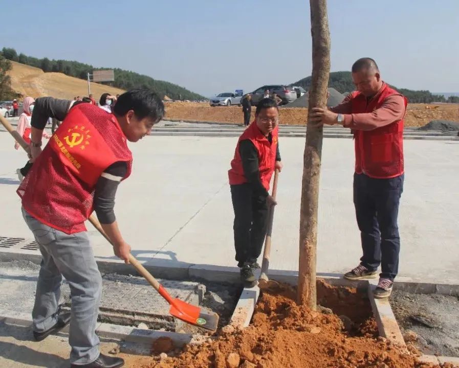 植樹現(xiàn)場,大家熱情高漲,干勁十足。黨員干部率先垂范,團(tuán)員青年、企業(yè)家、網(wǎng)格員、志愿者積極參與。三人一組、五人一隊(duì),有的揮鍬鏟土、提苗扶正,有的培土圍堰、提桶澆水,各個環(huán)節(jié)銜接有序,呈現(xiàn)一派熱火朝天的植樹景象。