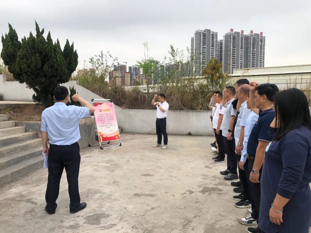植樹活動開展前,全體參與人員在譚國標(biāo)烈士紀(jì)念碑前肅立默哀,向烈士敬獻(xiàn)花籃并瞻仰烈士紀(jì)念碑,重溫入黨誓詞,表達(dá)對先烈的無限哀思和崇高敬意。