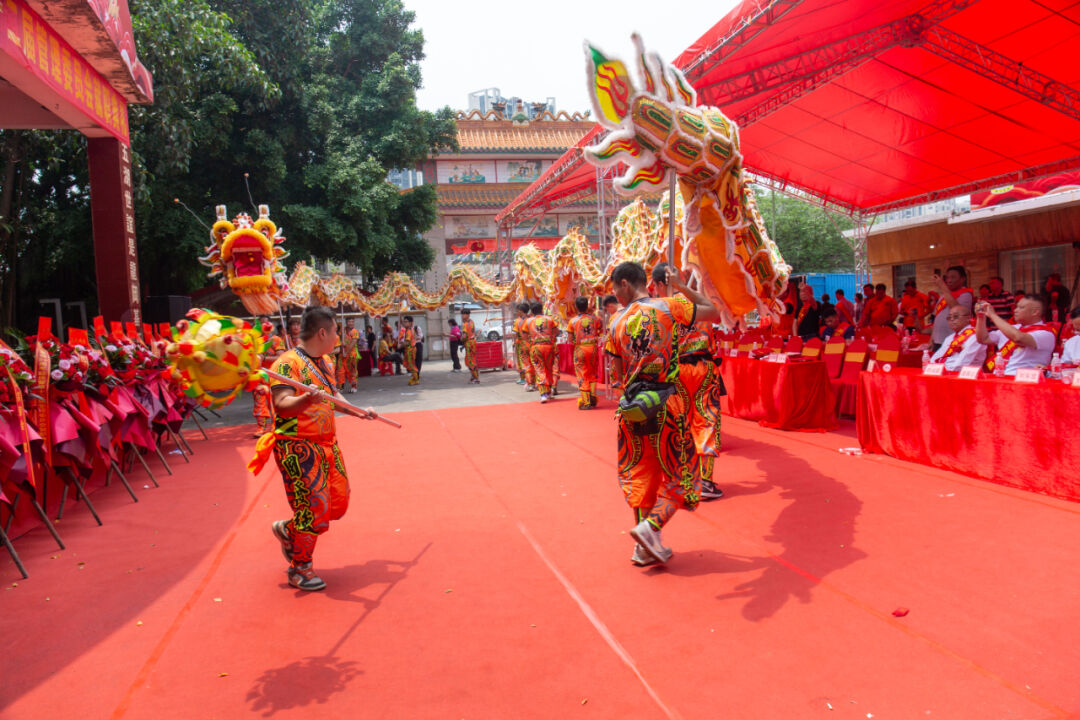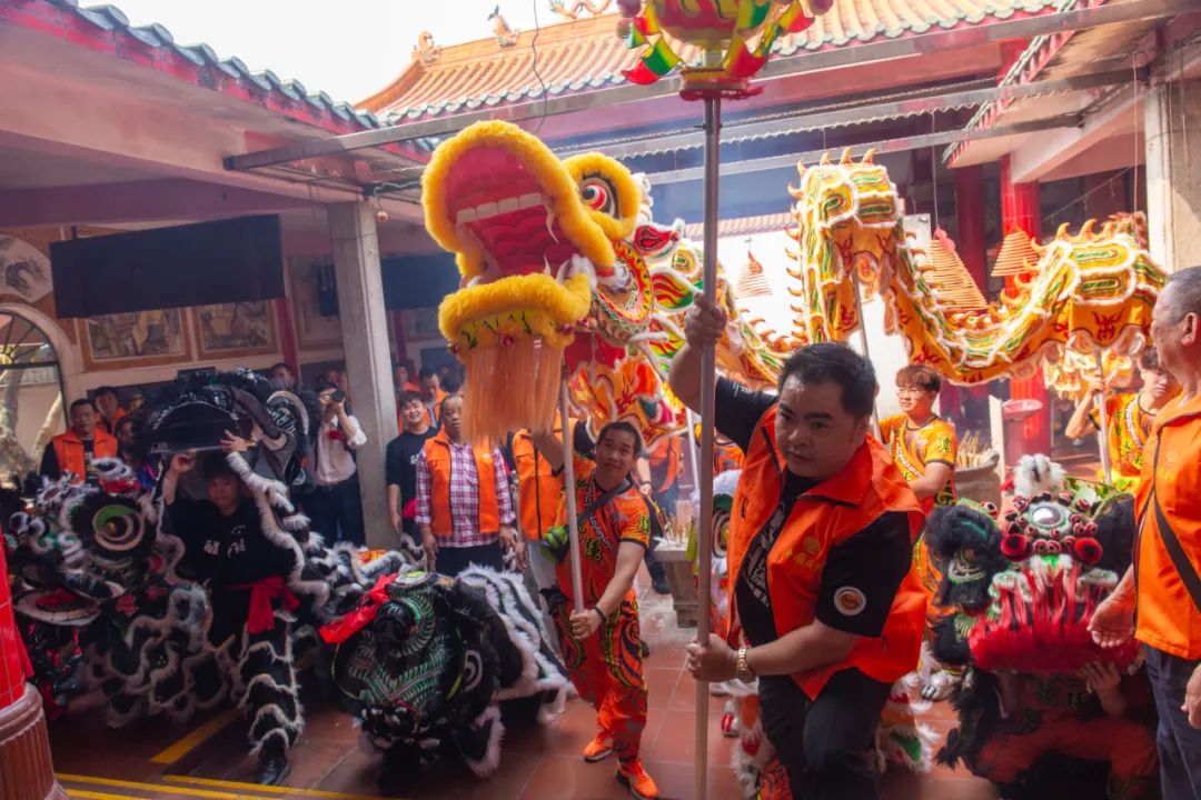 活動(dòng)期間,彩龍飛舞,醒獅朝拜,炮竹連連,鑼鼓喧天,一派歡騰熱鬧景象。