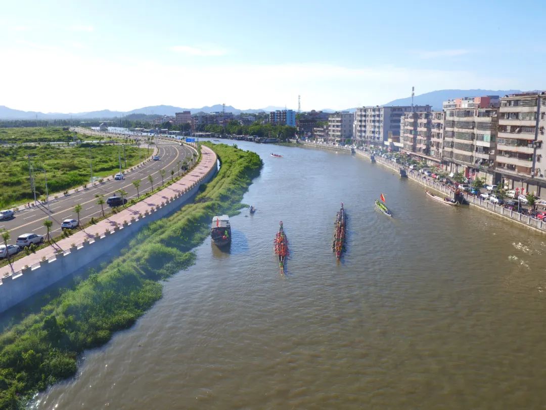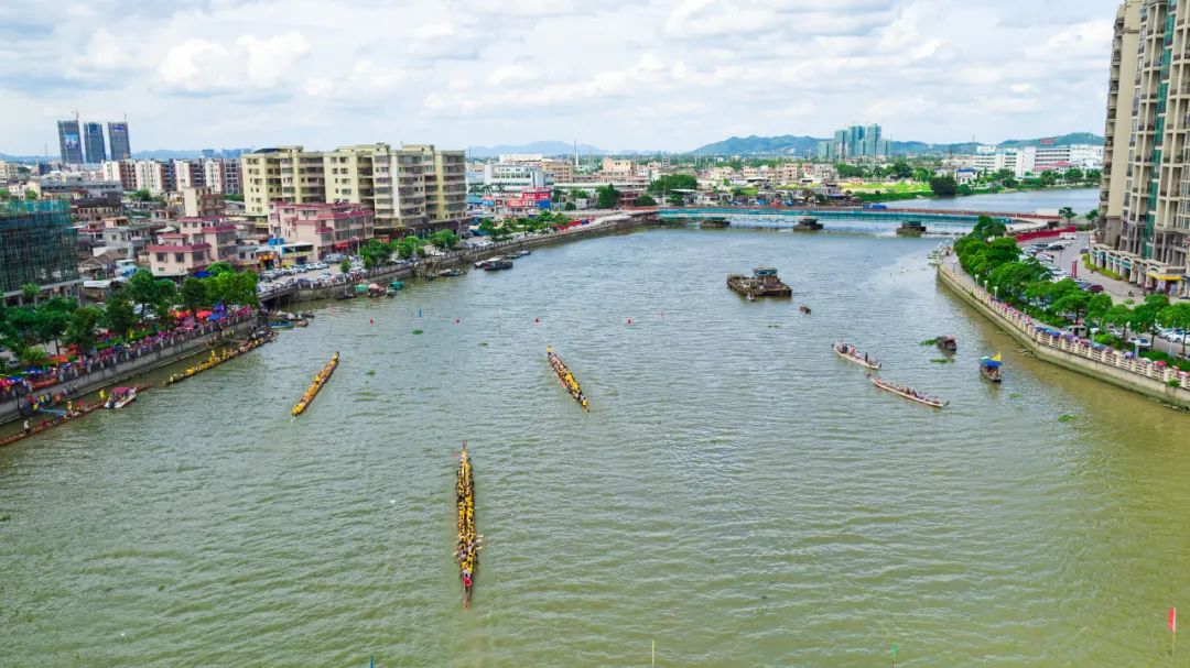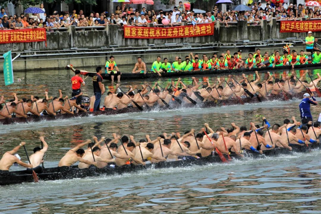 如今,水口范圍內擁有約20支龍舟隊伍,分別為在潭江(含新橋水)和蒼江流域活動的有喬林龍舟、開莊龍舟、龍?zhí)笼堉?、新風龍舟、欖沖龍舟、廿八村龍舟等;在岡中河域活動的有金山許邊龍舟、流津美龍舟、增新龍舟、水邊紅須龍舟、沖翼龍舟、古洲南龍舟、古洲北龍舟、土皮頭西龍舟、土皮頭南龍舟、岡中大頭龍龍舟等。每年端午節(jié)前后,水口鎮(zhèn)新橋水流域和沙岡岡中河流域,龍舟競渡、賽龍奪錦,船槳舞動,鼓聲震天,河道兩岸人聲沸騰,熱鬧非凡。