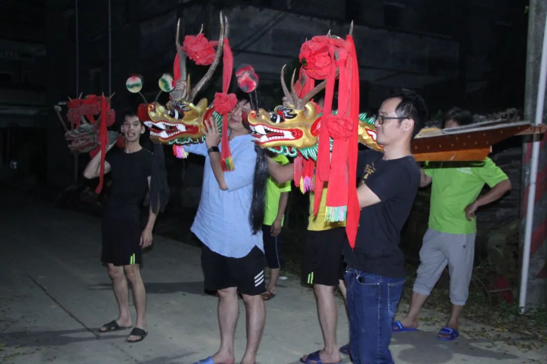 每年農歷四月初七晚子時,在村中德高望重的老人主持下,男丁們齊集祠堂,請出龍頭。眾人以銅鑼開道,扛著龍頭龍尾,周游整個村莊,把祝福送到每家每戶。巡游結束后,龍頭龍尾被再次安置在祠堂內。這個儀式象征著新一年龍舟活動的開始。