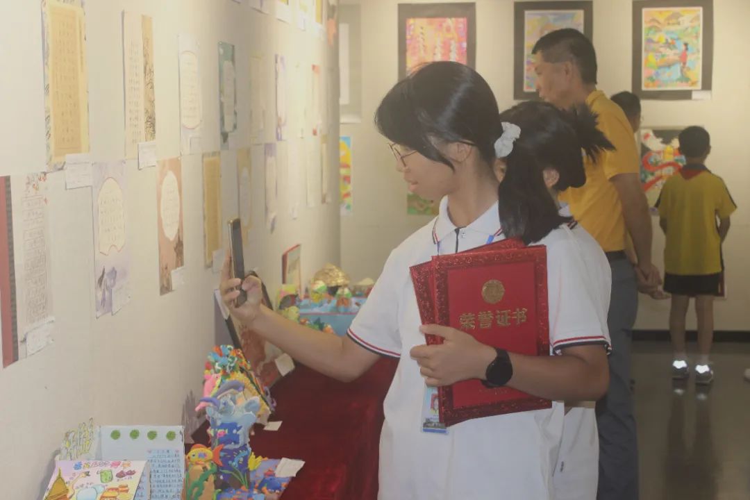 此次活動展出水口鎮(zhèn)教育系統(tǒng)中小學生優(yōu)秀書畫作品50多幅,涵蓋了硬筆書法、毛筆書法、手工、剪紙、繪畫、版畫等多種類別,主題突出、內(nèi)容豐富、形式新穎,充分體現(xiàn)了學生們的遐思妙想和出色的動手能力,示了水口鎮(zhèn)學子向陽生長、逐光而行的精神風貌以及對生活的熱愛和對藝術的追求。