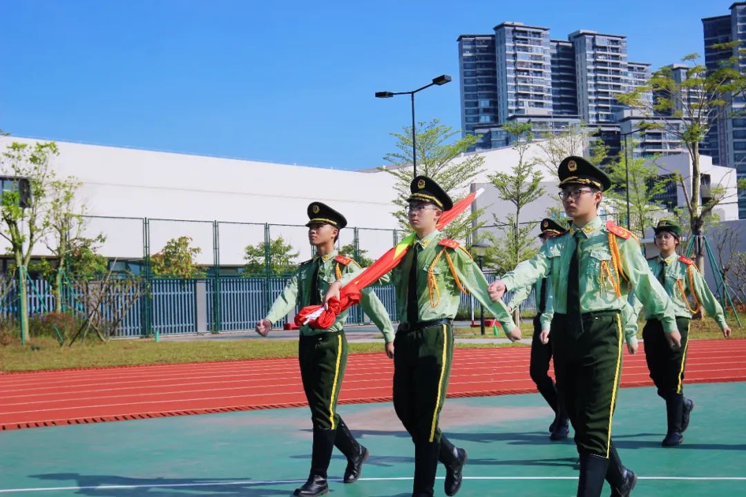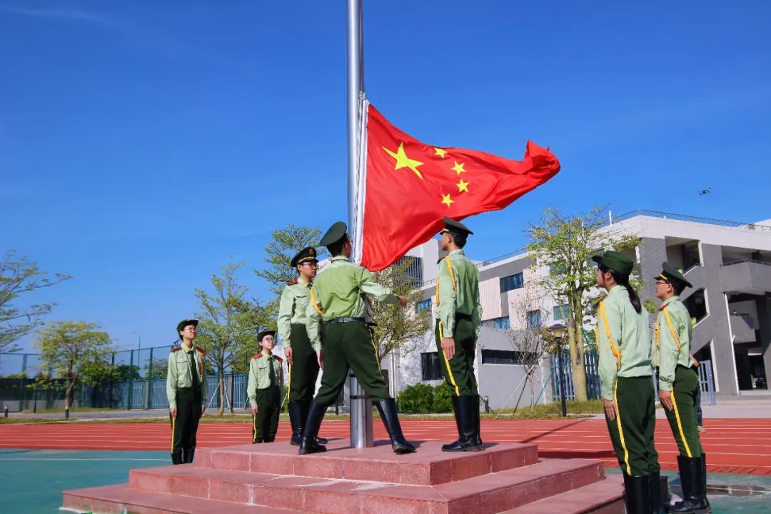 上午9時(shí)整,迎著蓬勃而出的朝陽,升旗儀式正式開始。國旗護(hù)衛(wèi)隊(duì)隊(duì)員邁著鏗鏘有力的步伐,昂首挺胸、精神抖擻,護(hù)衛(wèi)著五星紅旗走至國旗臺(tái)前。